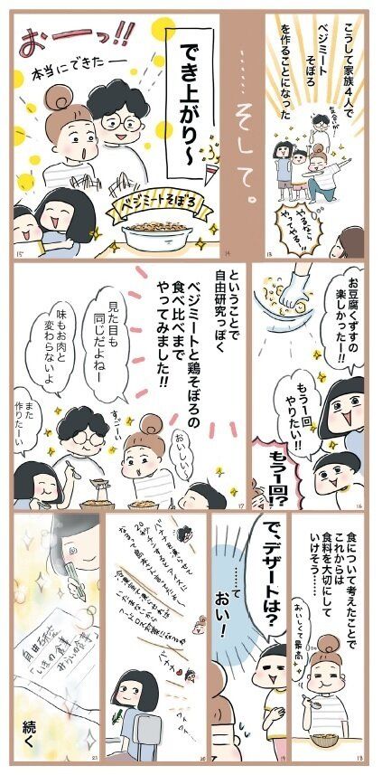 簡単なので親子でぜひ作ってみて。ベジミートはダイエットに使えたり、お金の節約になったりと、魅力も多いのでふだんから活用を。
