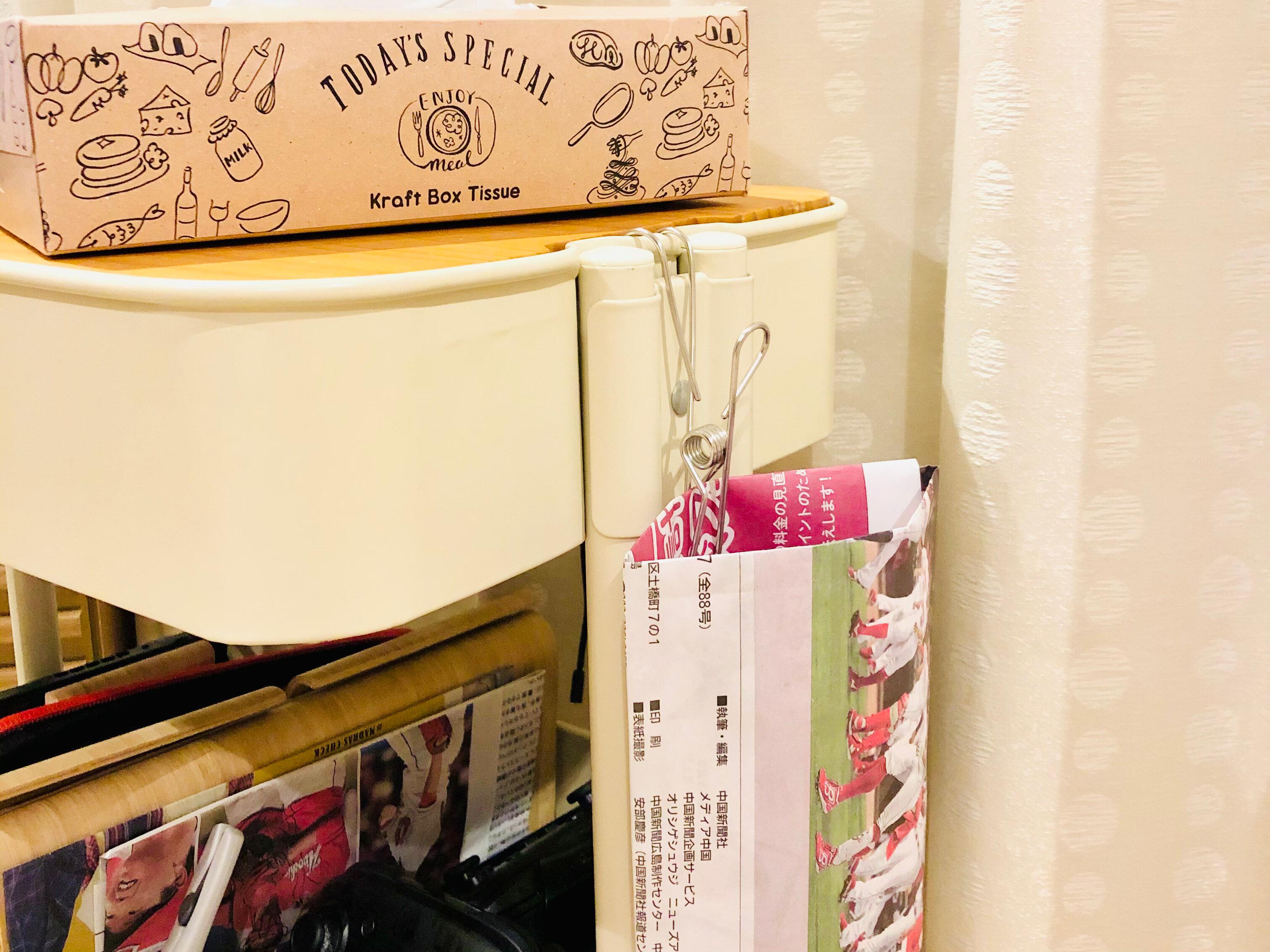 また、軽くて薄いので、クリップなどで挟んで、ぶら下げて使う事もできます。ゴミがいっぱいになったら、ゴミ箱ごと捨てられるのも嬉しいポイントですね。