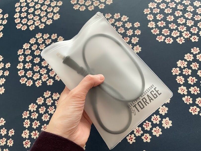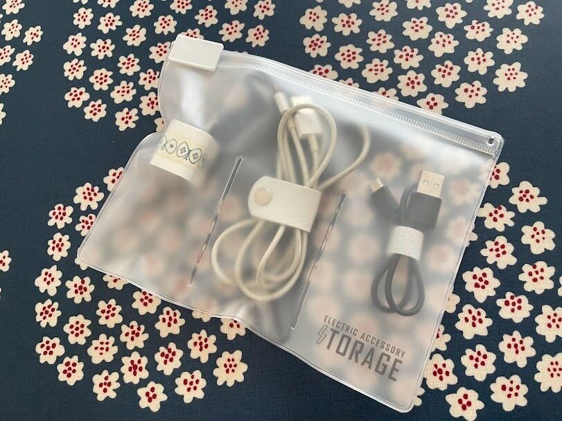 スマートフォンのケーブルや充電ケーブルもそれぞれポケットに分けて収納できるので、ごちゃつくことがないので、パッと取り出すことができます。旅行へ持っていくのにも便利ですよ。