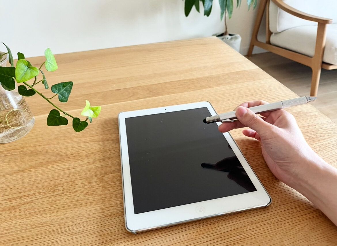 2つ目の機能は、タッチペン。ボールペンの反対側の先端がタッチペンになっています。こちらは静電容量方式タッチパネル用のタッチペンです。タブレットやスマートフォンなどの液晶画面の操作に使えます。