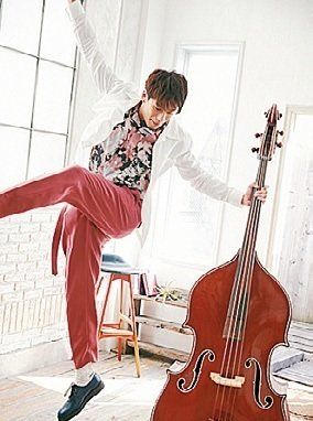 撮影スタジオにあったコントラバスで遊び始めた森崎さん。大人の色気漂う表情から一転、子どものようにはしゃぐ姿にスタッフみんな癒やされました。