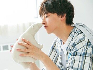 自宅では犬を飼っている伊藤さん。スタジオにあった熊の置物と遊ぶ姿すらも絵になっていました!