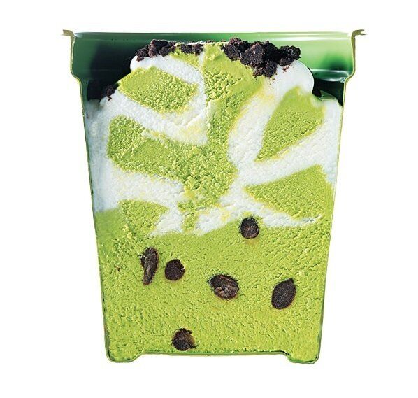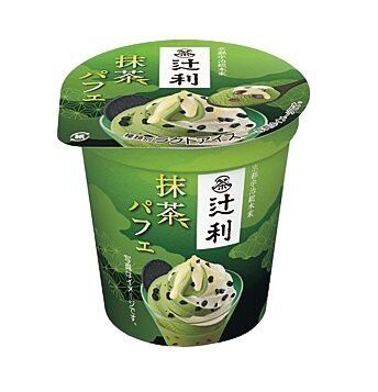 (坂)「京都宇治総本家・辻利の抹茶を使った、和カフェ風パフェアイス。下にいけばいくほど抹茶が濃厚になり、たまらない。下層にあるあずきも上品な甘さで、ごほうび感がすごい!」。