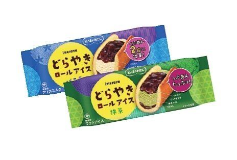 井村屋「KASANELどらやきロールアイス」(バニラ・抹茶)各140円