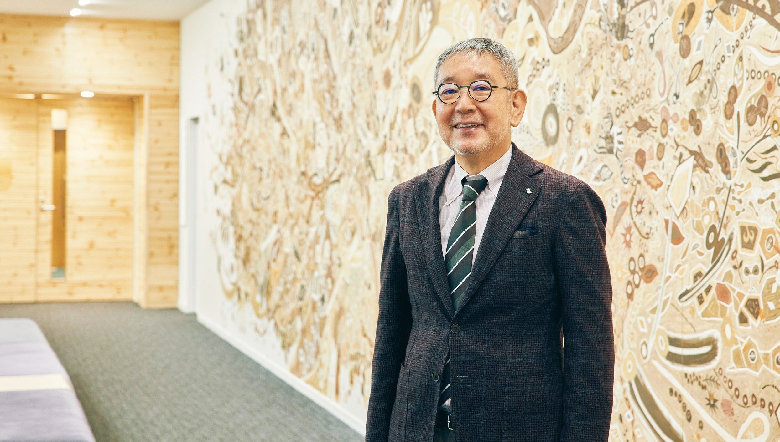 1956年生まれ。医学部を卒業し米国で公衆衛生を学んだ後、父の経営していた医療法人あさかホスピタルを継ぐ。背景にある壁画は患者や職員ら100人を超える方々とアーティスト淺井裕介氏とともに制作したもの。
