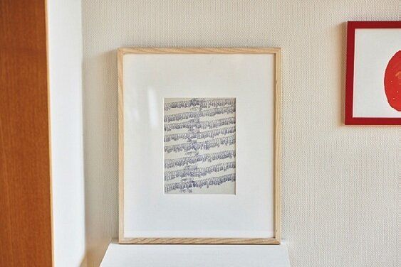 自分の名前を書く練習として始めたのがきっかけ。規則性があり、音符のようにも、芋虫がうねっているようにも見える。この作家、伊藤峰尾さんの作品は海外でも人気なのだそう。