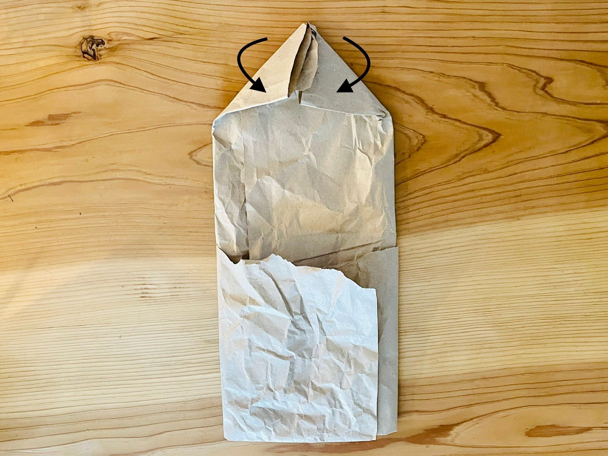 • 上部を三角に折って入れ込む