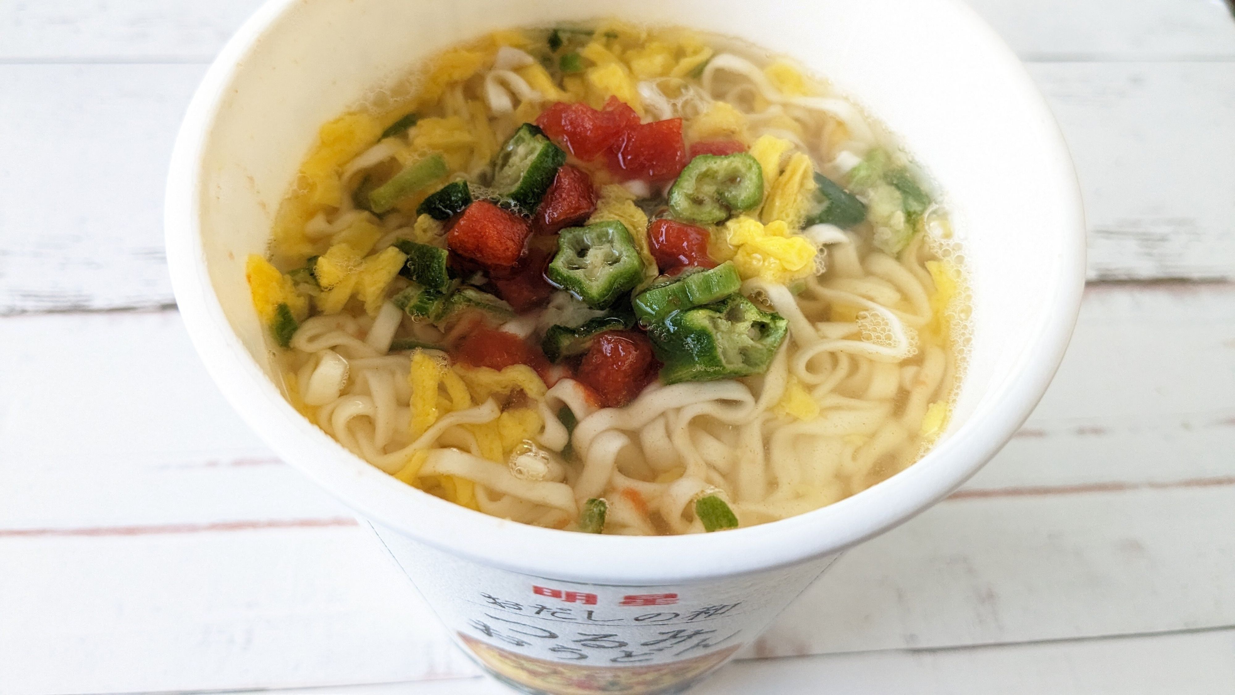 その第一弾商品が「明星 おだしの和 つるみおうどん トマトとおくら」なのだそうです。
