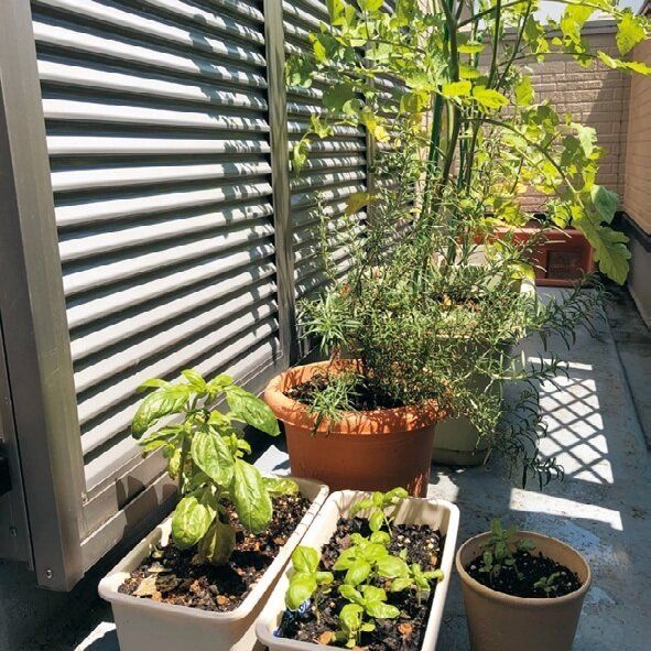 @ベランダでプランター栽培、キッチンの出窓で鉢植え
