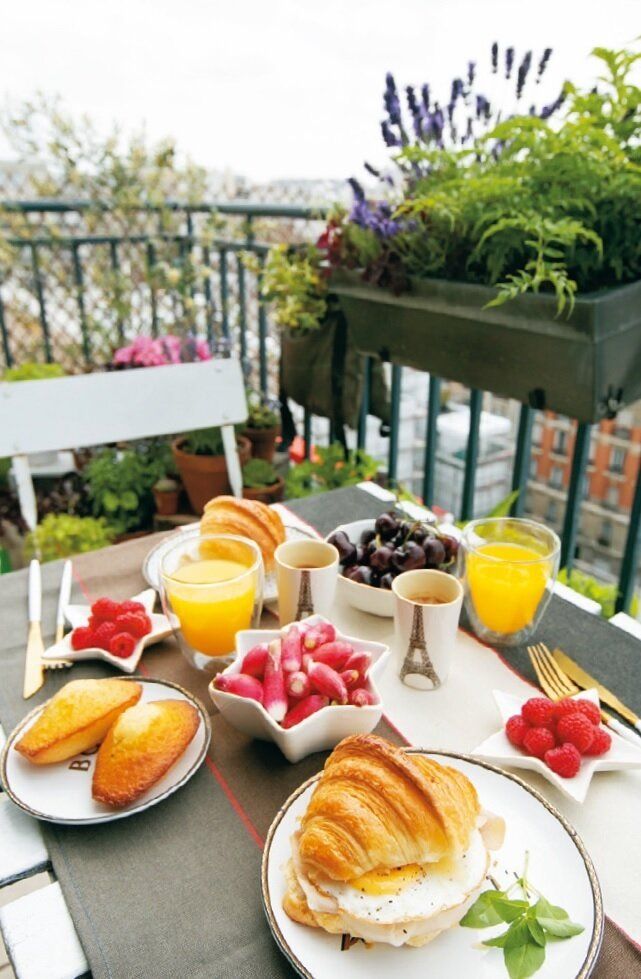 パリの街を見下ろすベランダは家の中の特等席。天気がよい日はベランダのテーブルに朝食を並べて朝の爽やかな空気を感じながら子どもと一緒に朝ごはんを楽しみます。