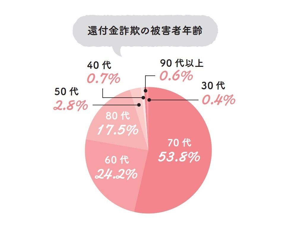 令和4年に都内で起こった特殊詐欺の件数は3218件。そのうち約26%を占めるのは「還付金詐欺」です。被害者は半数以上が70代ですが、60代も約25%と大勢います。「うちの親はまだ若いからだまされない」と過信するのは危険です。