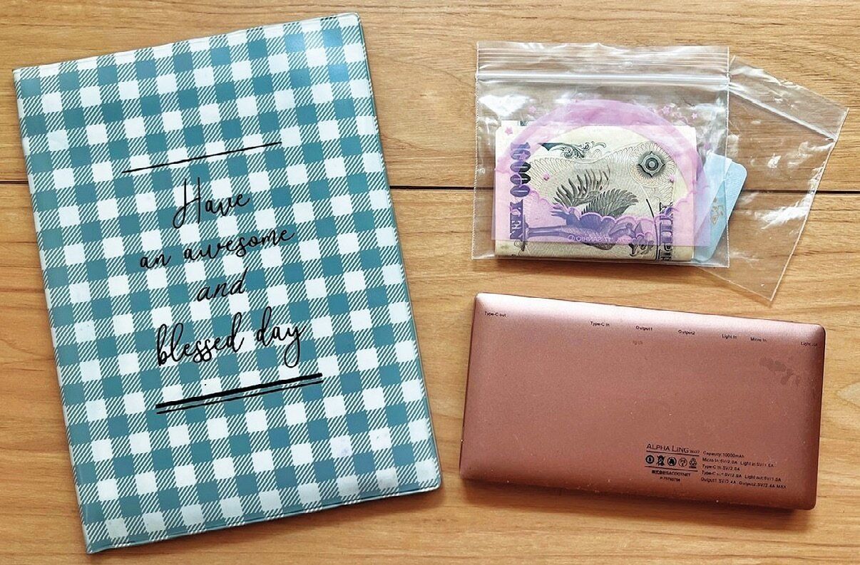 「災害時にはペイやクレカが使えなくなると思い、財布とは別に現金(1万円程度)を持ち歩くことに。また、東日本大震災のとき、スマホの充電に困った経験から、急速充電器も必ず持参。約2回分フル充電ができます」。