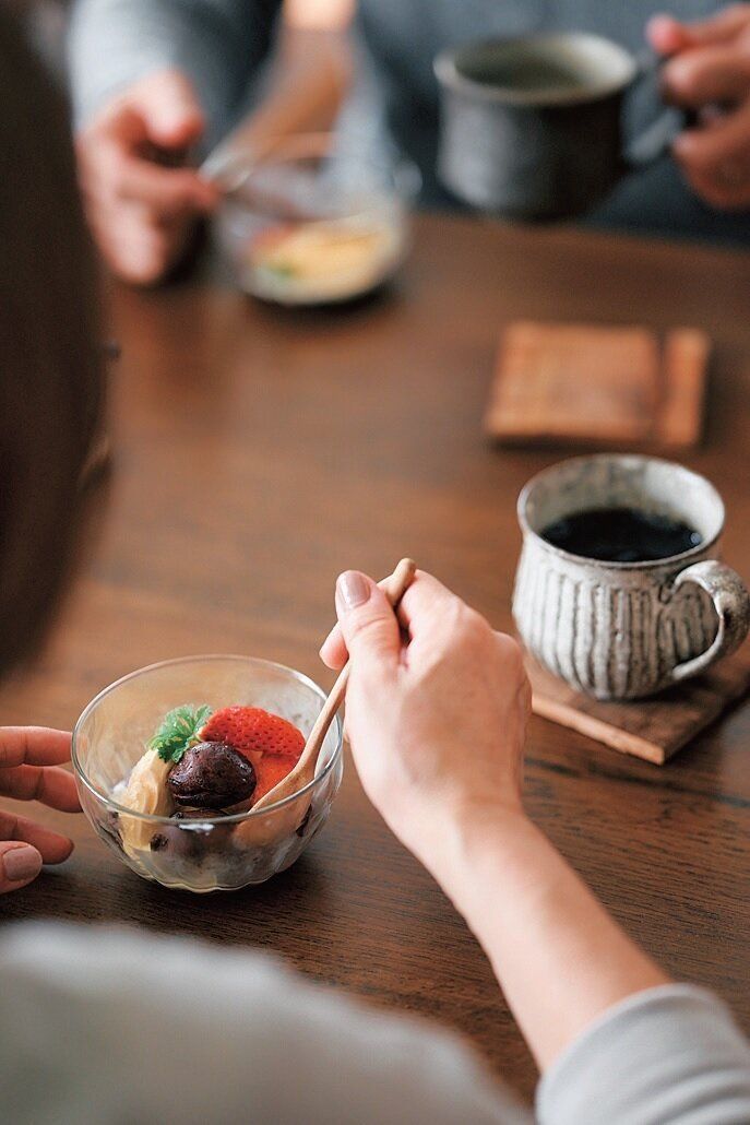 平日朝はコーヒーメーカーに頼りますが、休日の朝とティータイムにコーヒーを淹れるのは夫の担当。「コロナ禍の在宅勤務中、コーヒーにハマった夫。本やYouTubeで淹れ方を研究しているので、本当においしいです」。
