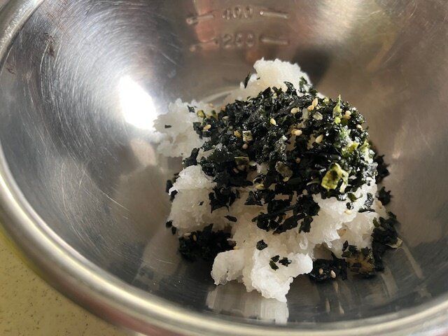 大根おろしを用意します。軽く水気を切ったら