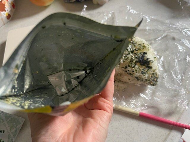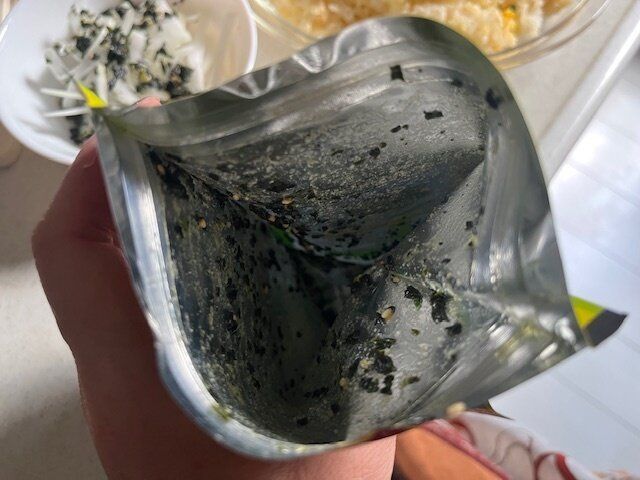 実はこちら、全部ふりかけたあとの袋をのぞいてみるとごま油が周りについているのでわかめがたっぷりとくっついています。
