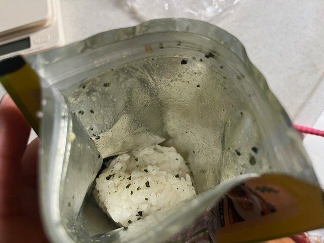 この袋のなかに少量のご飯を入れてしまうのです。小さいおにぎり程度。