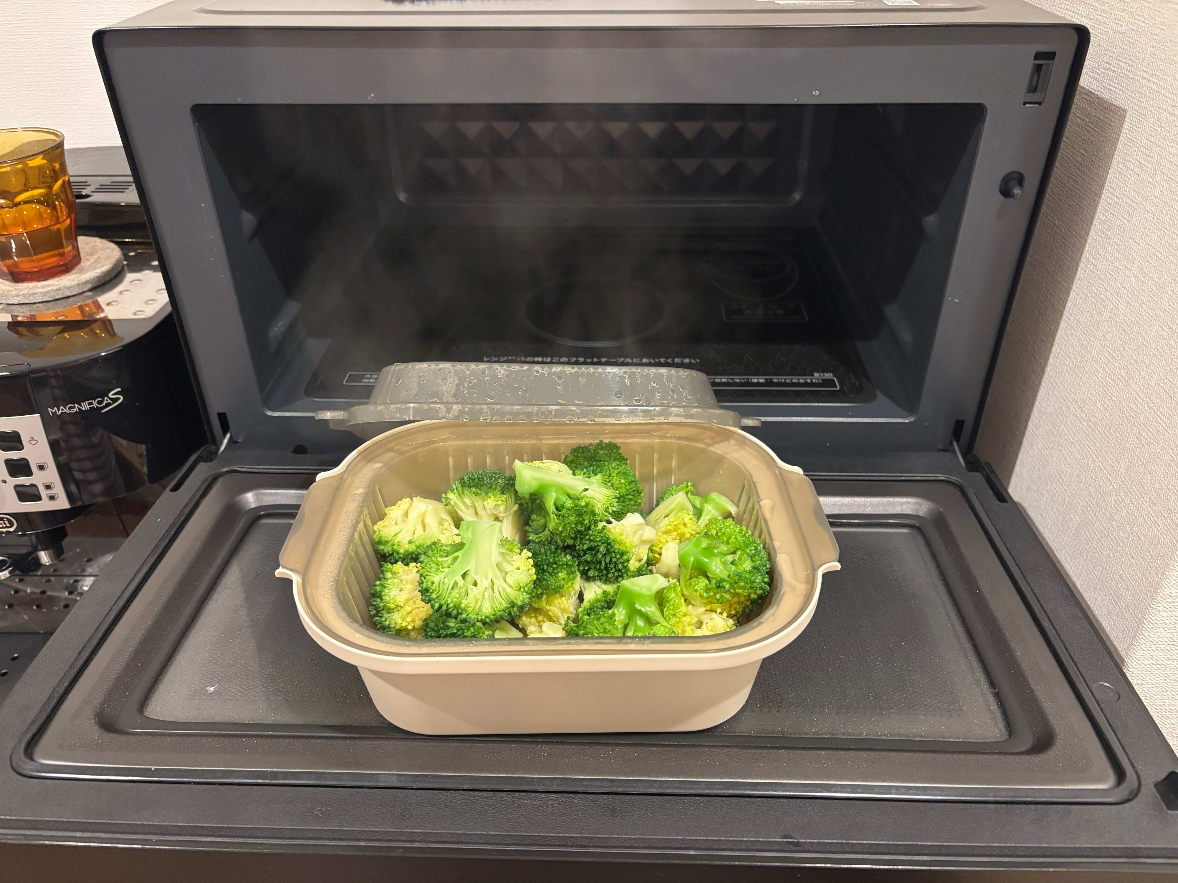 3COINSで手に入る、電子レンジで手軽に温野菜がつくれる人気アイテム。