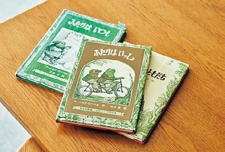 家のあちこちに潜んでいるカエルのマスコットは、馬田さんが仕事に行き詰まっていた30代の頃、自分のために買った絵本『ふたりはいつも』の主人公たち。「娘にも、いちばん読み聞かせた絵本だと思います」。