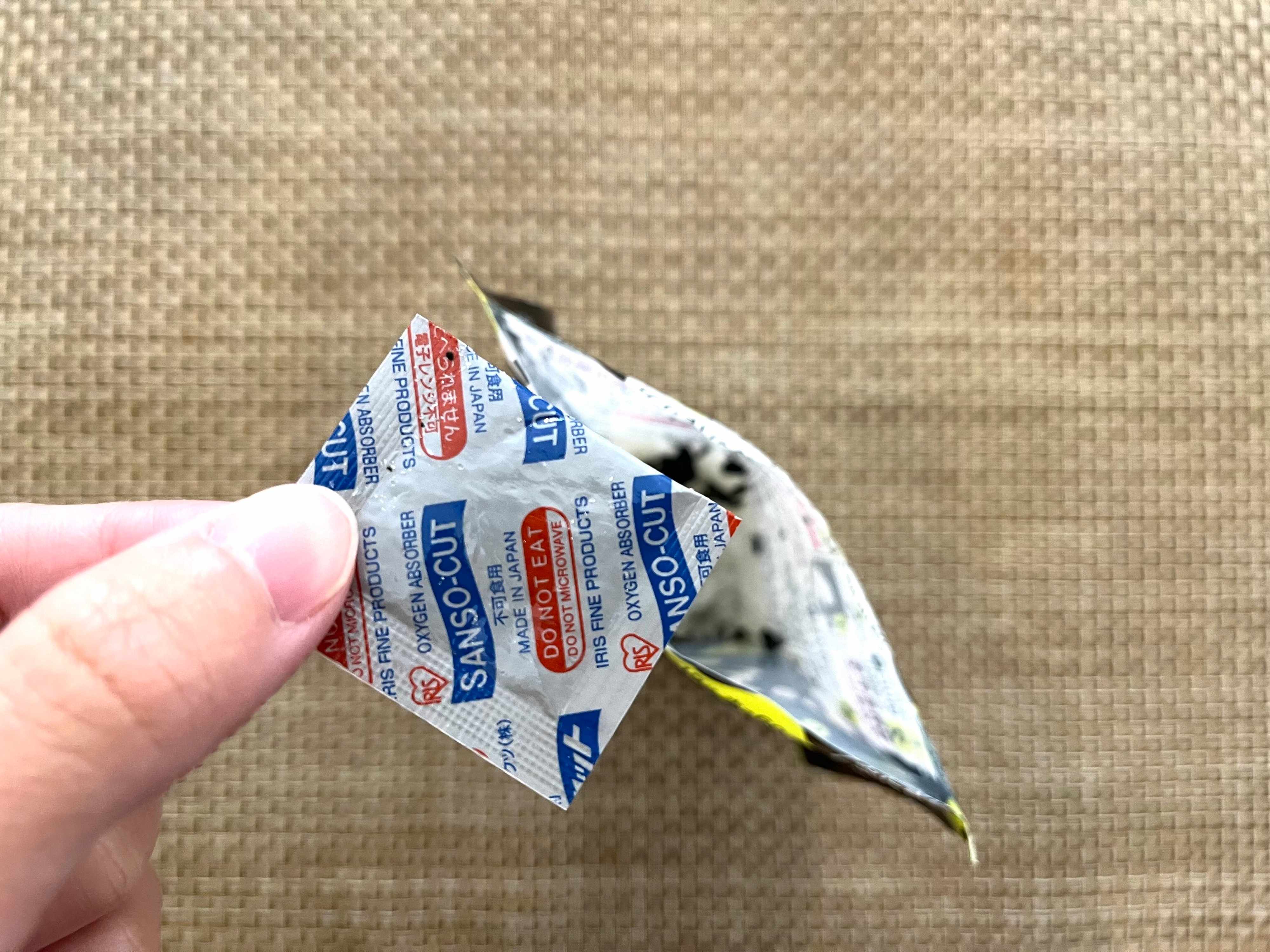 上の切り口をあけて、脱酸素剤を取り除きます。