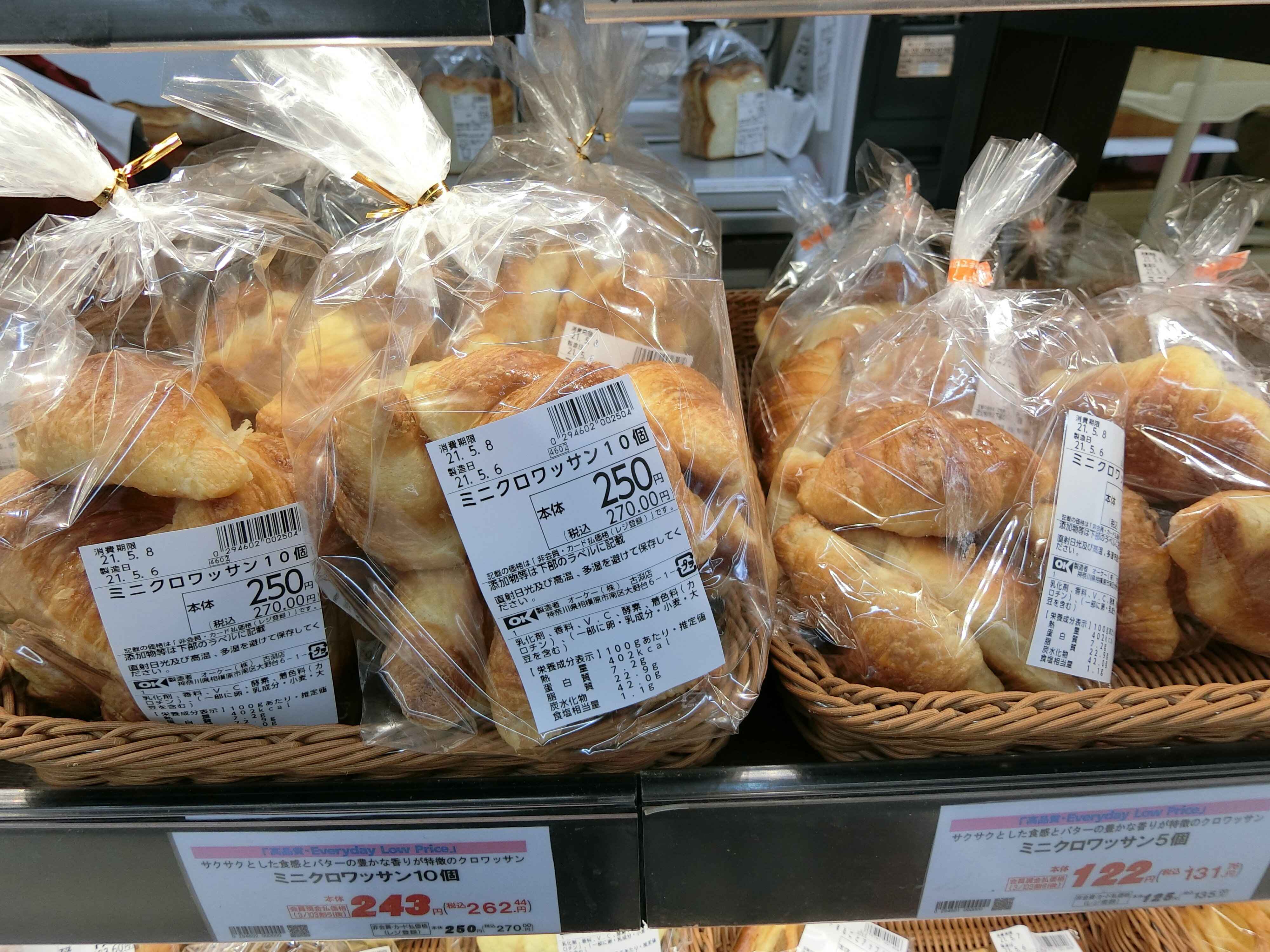 OKではパンを店内で焼き上げているそうで、これがとってもおいしいんです。味はパン屋さんくらいのレベルなのに、スーパーの価格で買えるのが嬉しいところ。