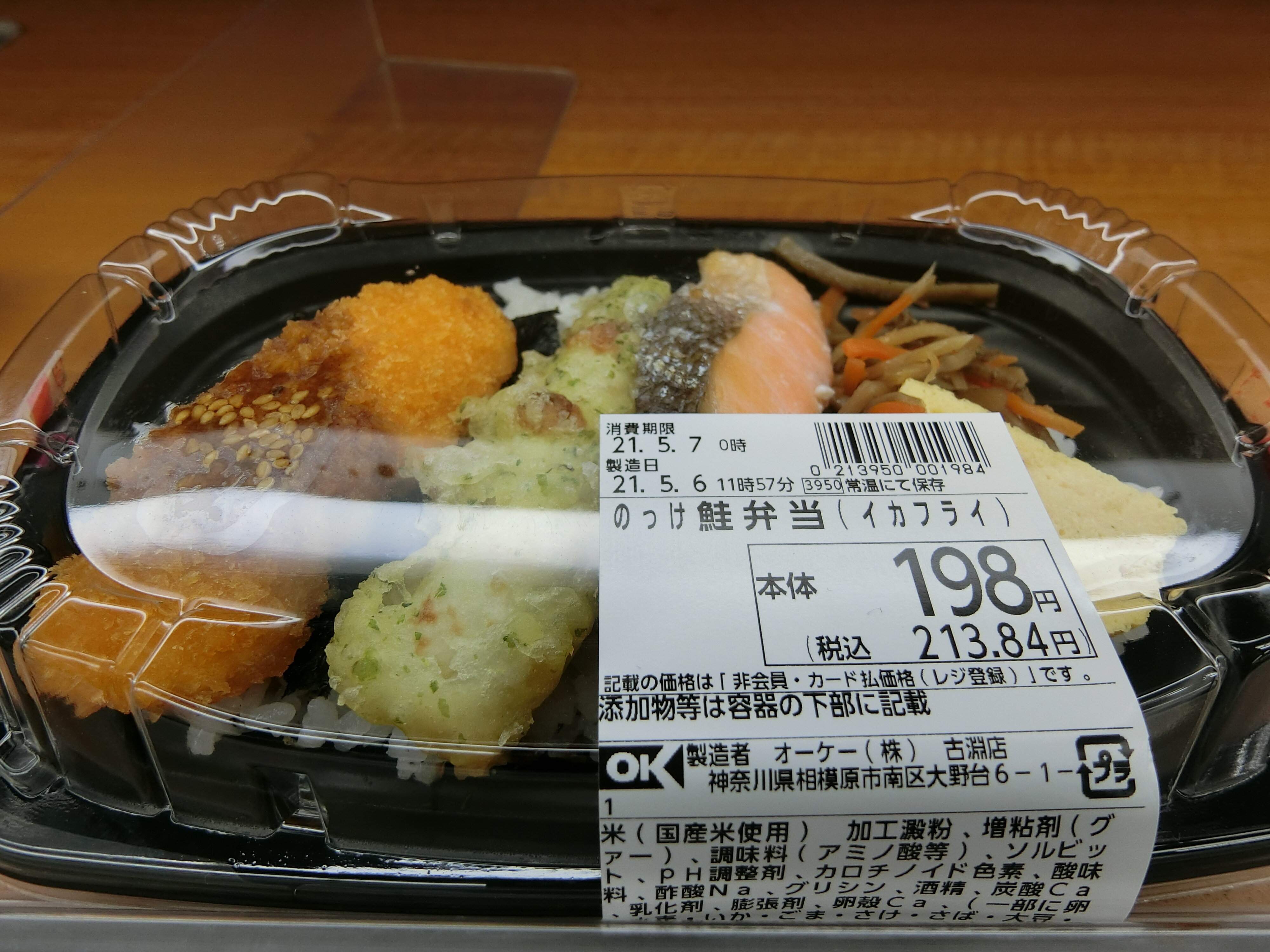 こちらののっけ鮭弁当、213円ですって!