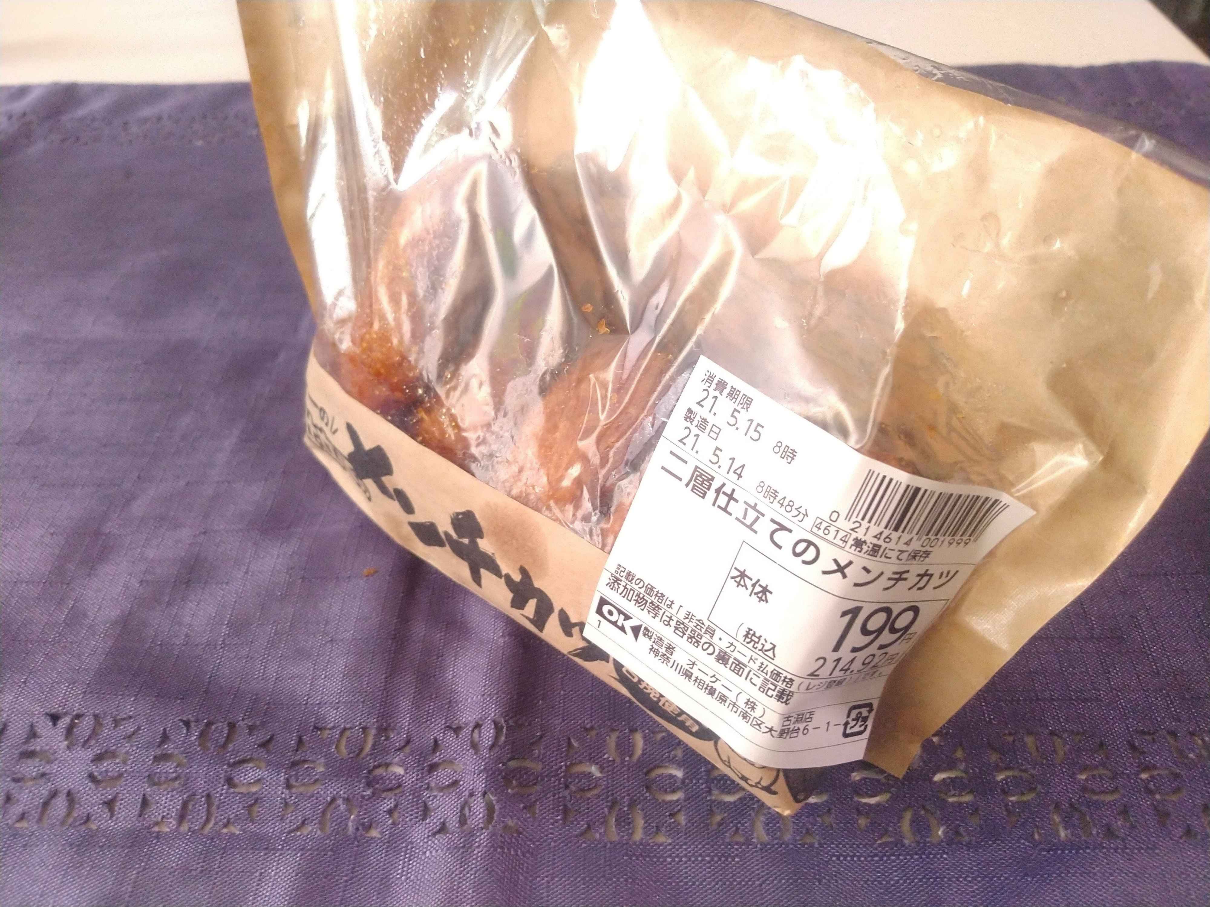 オーブンで温めればさくさくジューシー、揚げたて!(ということにする)先ほどのカレーにトッピングすれば256円でメンチカツカレーが食べられます♪子どもが小さくて今ほど頻繁に買い出しに行けなかった頃は、このメンチカツをまとめ買いして冷凍庫にストックしていました。レンジで少し温めてからオーブンで加熱すると、冷凍保存してても揚げたてみたいに食べられます。おいしいですよ~。