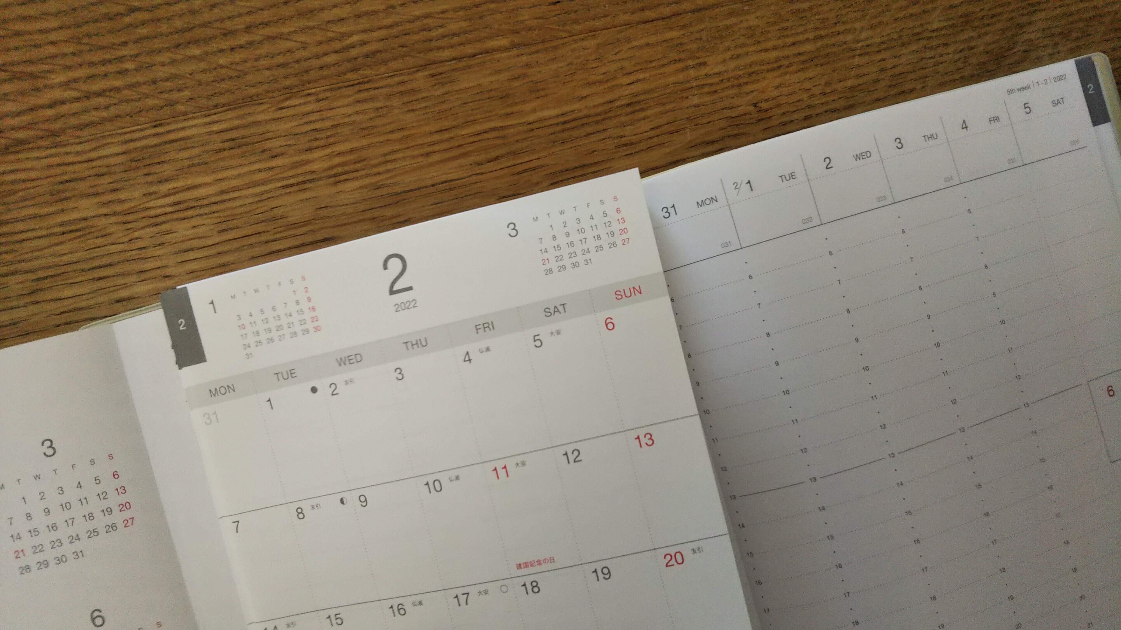 ・広げて一度に見られるから月の予定を週に書き込みやすい