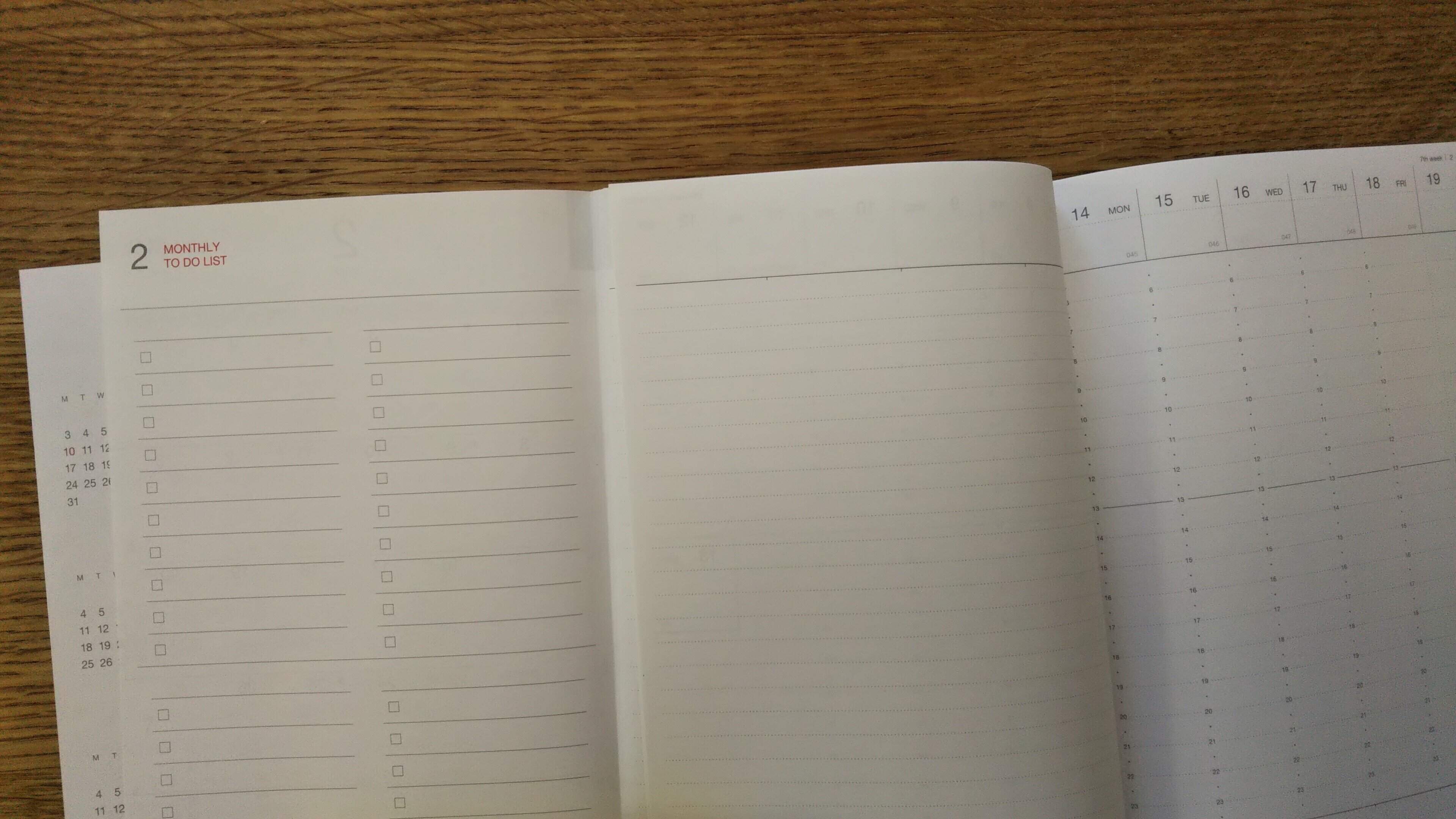 週ごとにメモを残せるのと、月間の予定と週間の予定が見開きでわかるのがページをめくるストレスなくできるのが私にとっては一番の良いところ。