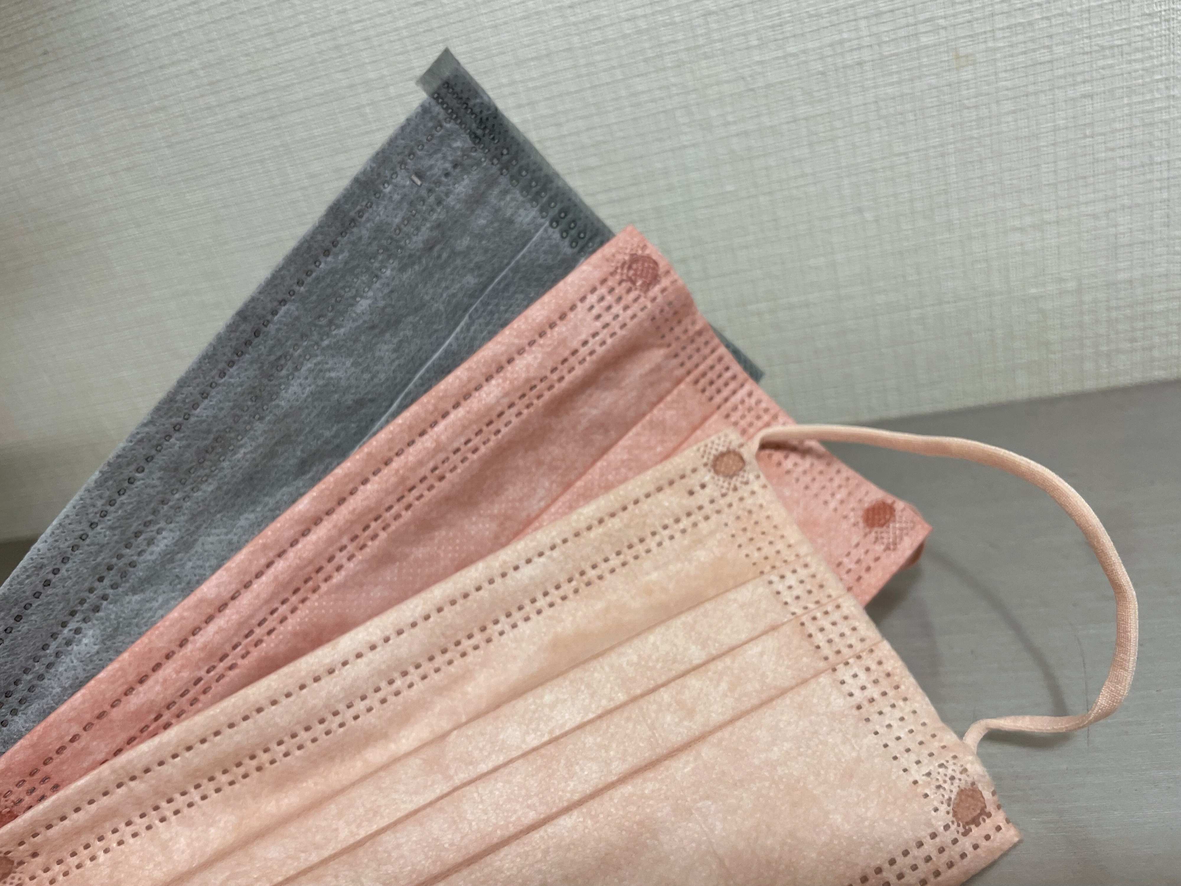 不織布マスクが再注目されていますが、私のイチオシは「立体カラーマスク」です。立体構造になっているため、口紅がマスクにつきにくく、息もしやすいです。