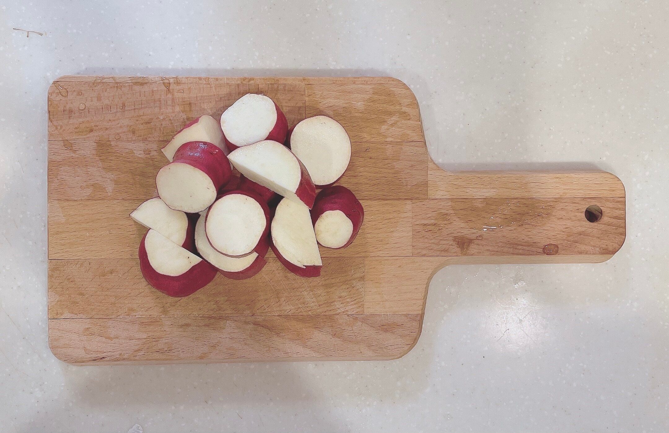 1:さつまいもをざっくりカットし、電子レンジで柔らかくする(600Wで2分程度)