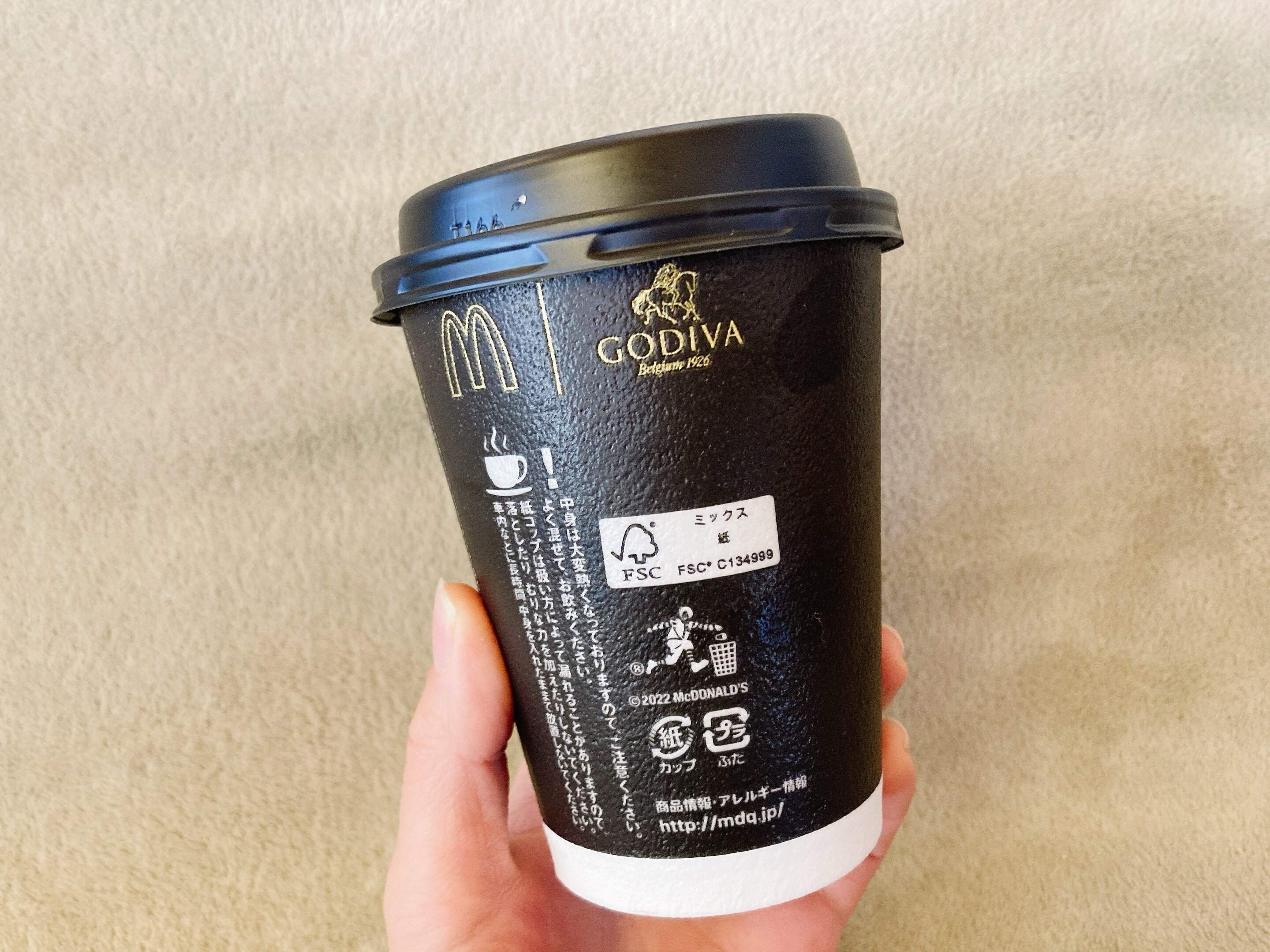 ドリンクカップも黒く、金色の文字でマクドナルドのロゴとGODIVAのロゴが描かれており高級感のある限定カップとなっています。