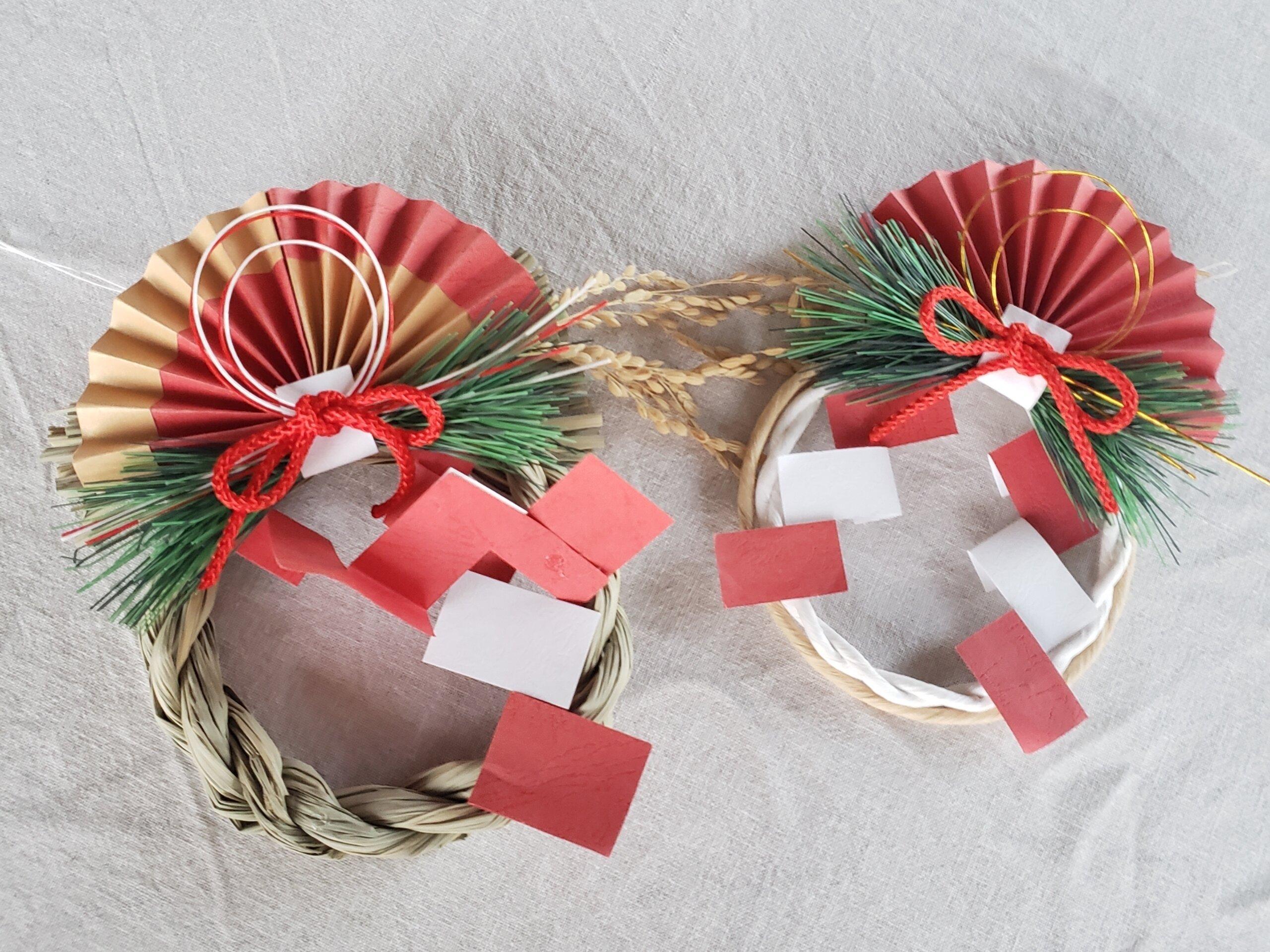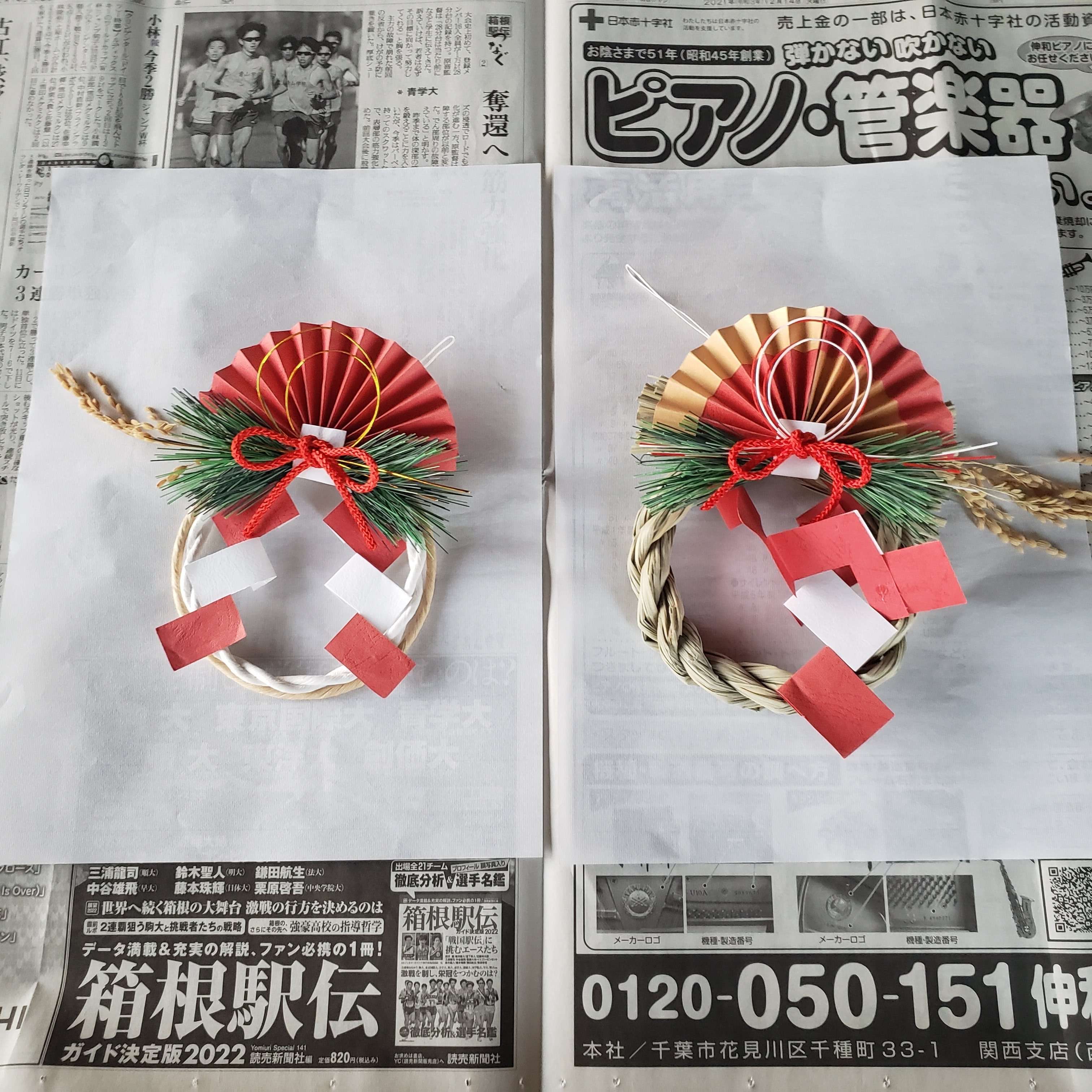 広げた新聞紙または白い布の上に正月飾りを乗せます。