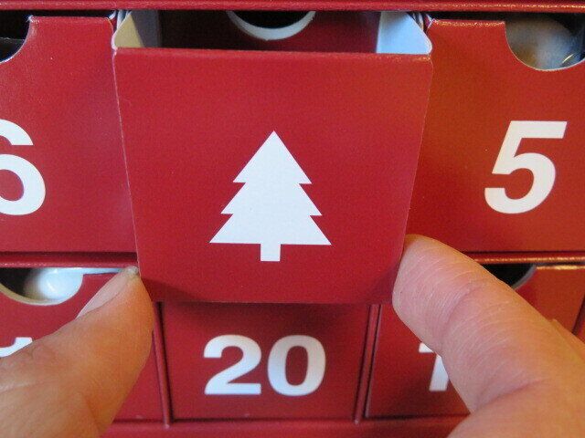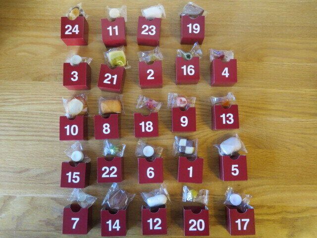 アドベントカレンダーは、12月1日からキリストの誕生日前夜とされる12月24日までの日付が記され、日付のついたところを開けるとお菓子などが入っているもの。