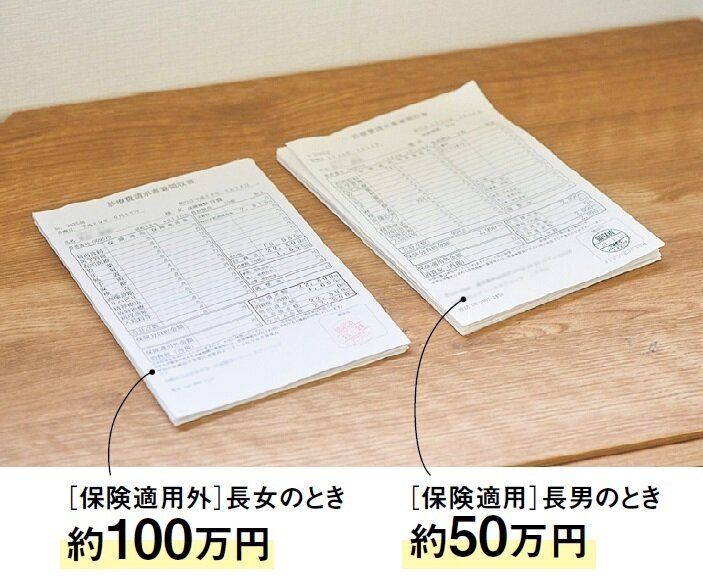保険適用の1人目と保険適用後の2人目。夫と「だいぶ安くなったね」と話しました