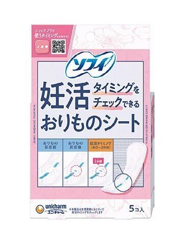 おりものに含まれる「妊活おしらせ物質」に反応し、排卵タイミングを知らせてくれるシート。2023年に発売され、手軽さが話題をさらった。「ソフィ 妊活タイミングをチェックできるおりものシート 5コ入」店頭想定価格 ¥600前後(税込)/ユニ・チャームTEL0120・423・001