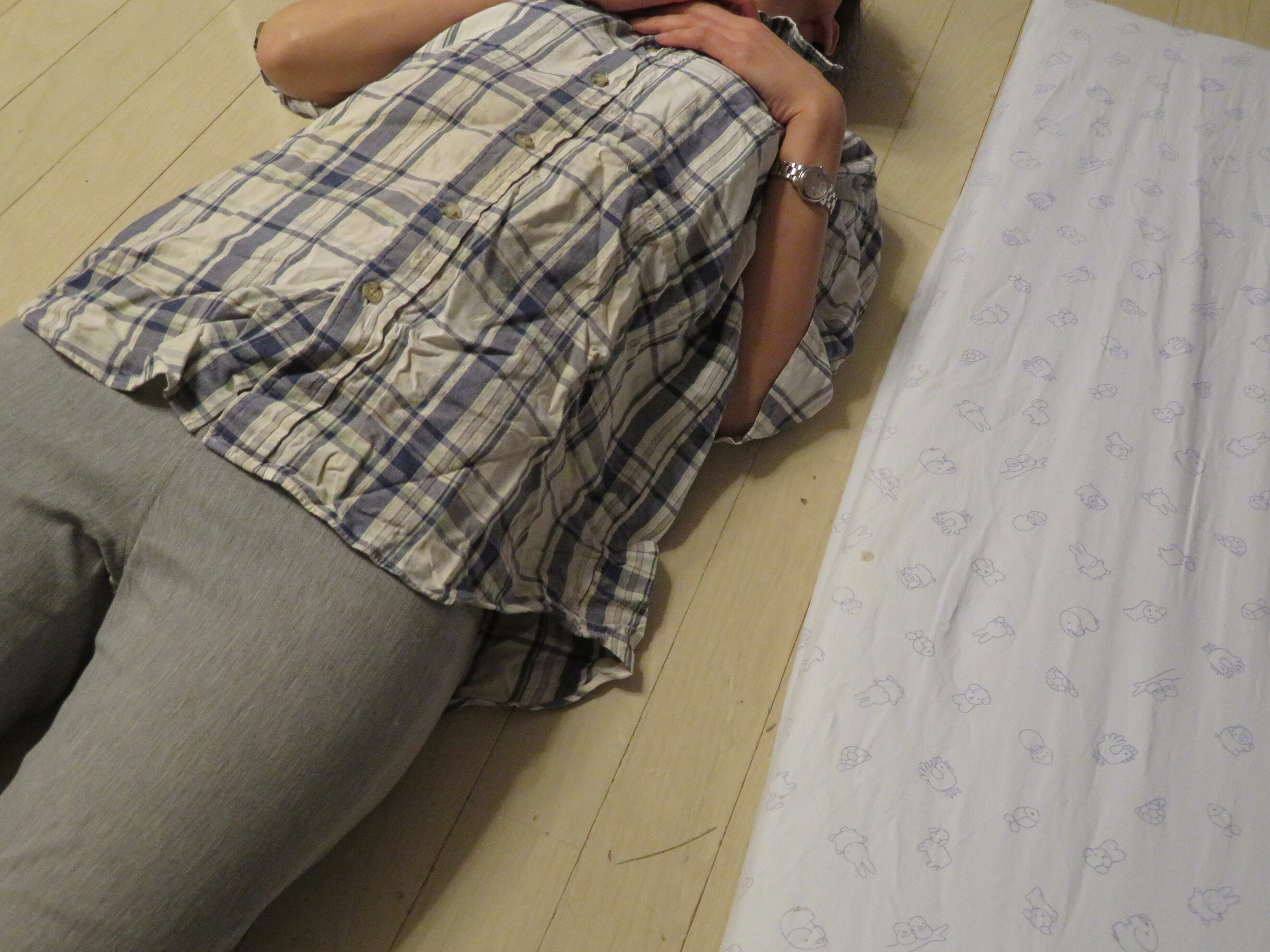 息子を抱くこともままならず、授乳をやめて息子をベビー布団へ。