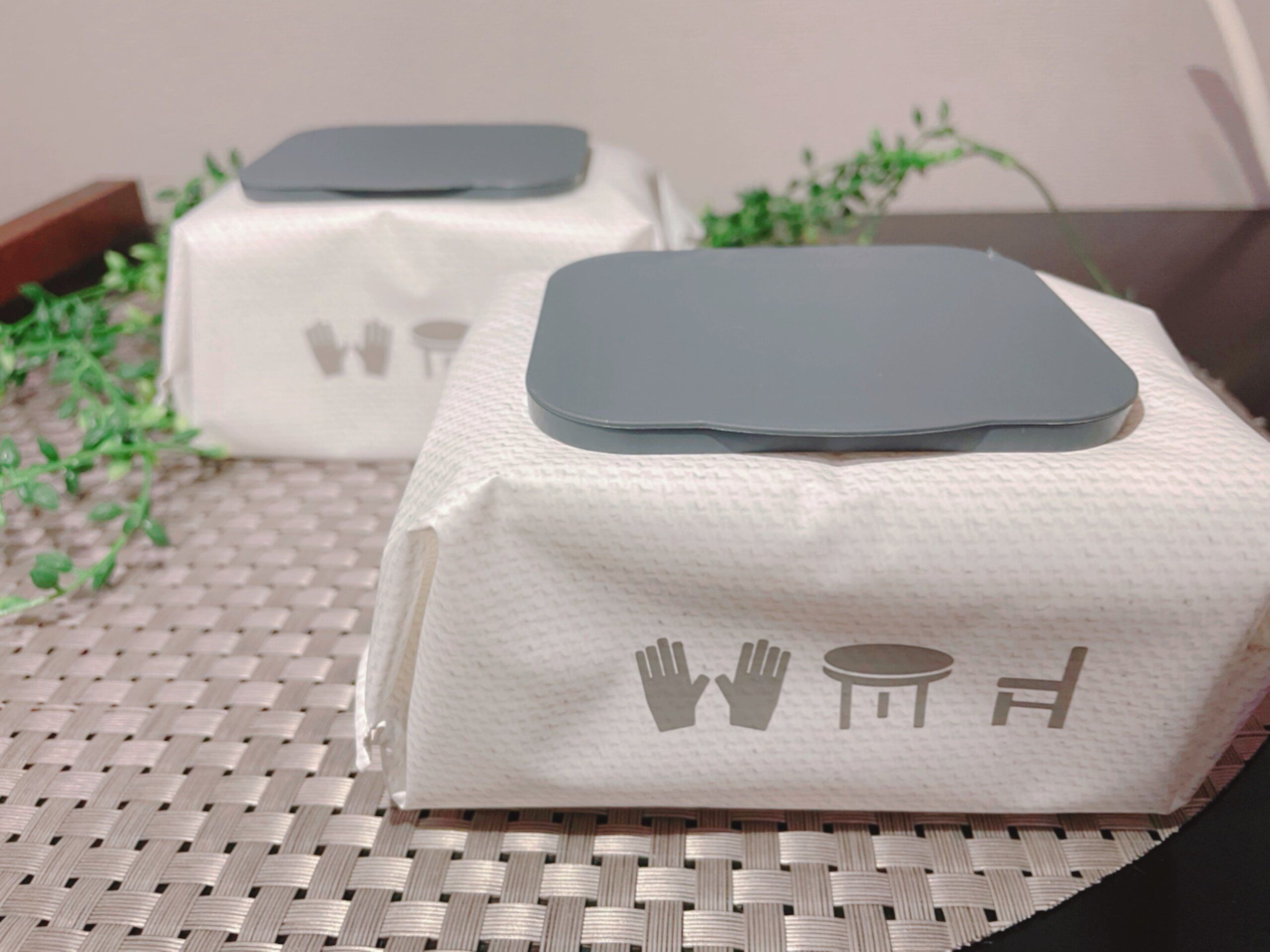 インテリアの邪魔をしない、フタがグレーでお洒落なウェットティッシュ。フタ付きで乾燥を防ぎ、最後までしっかり使うことができます。