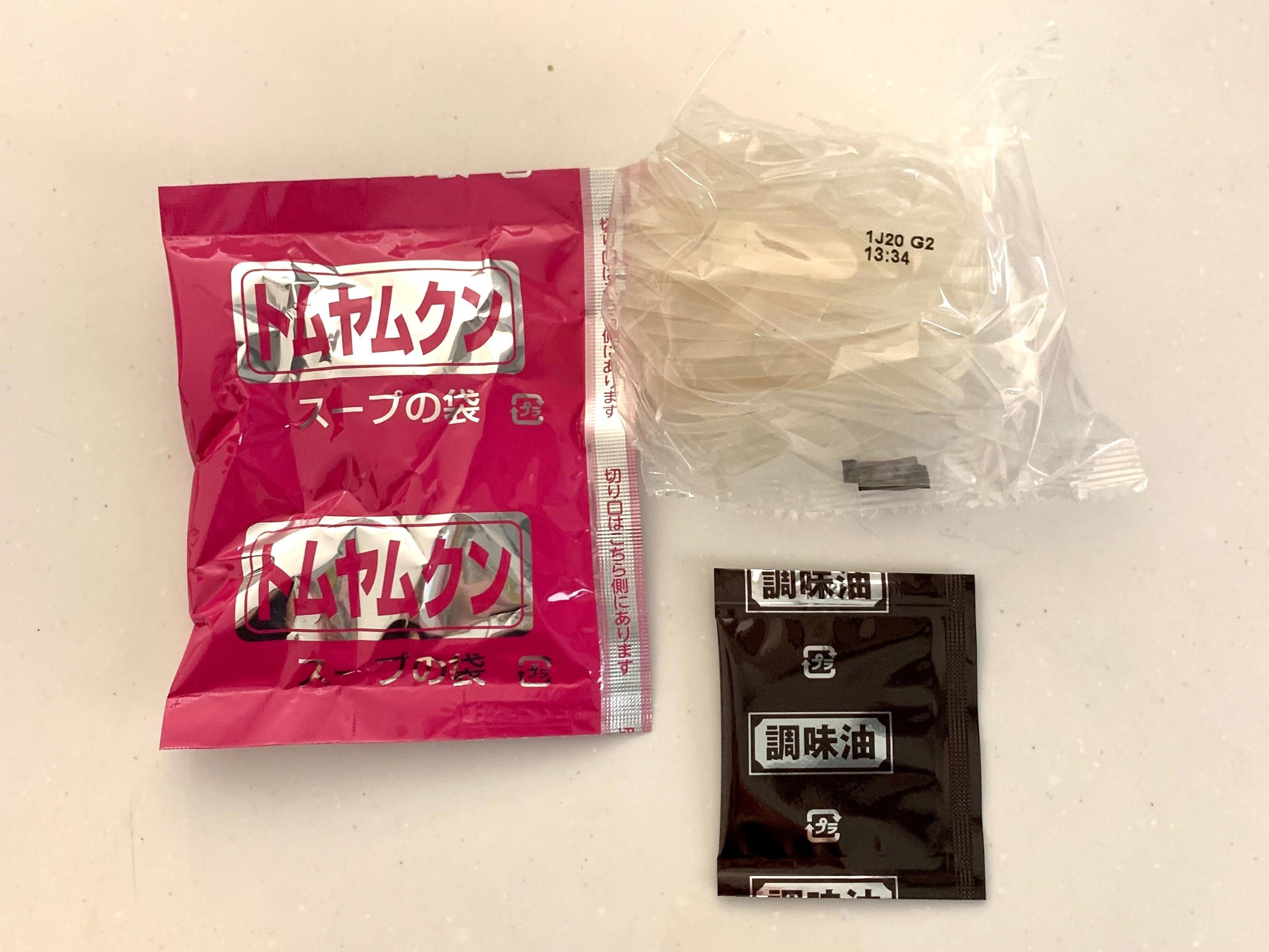 中身は粉末スープと、乾燥フォー、後入れ調味油。こちらはカップに粉末スープと乾燥フォーを入れ、お湯を注ぎ3分待った後、食べる直前に調味油を入れます。