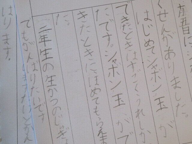 娘の小1の頃の作文を確認したところ、指導のかいあって(?)自分の気持ちも書けていました。
