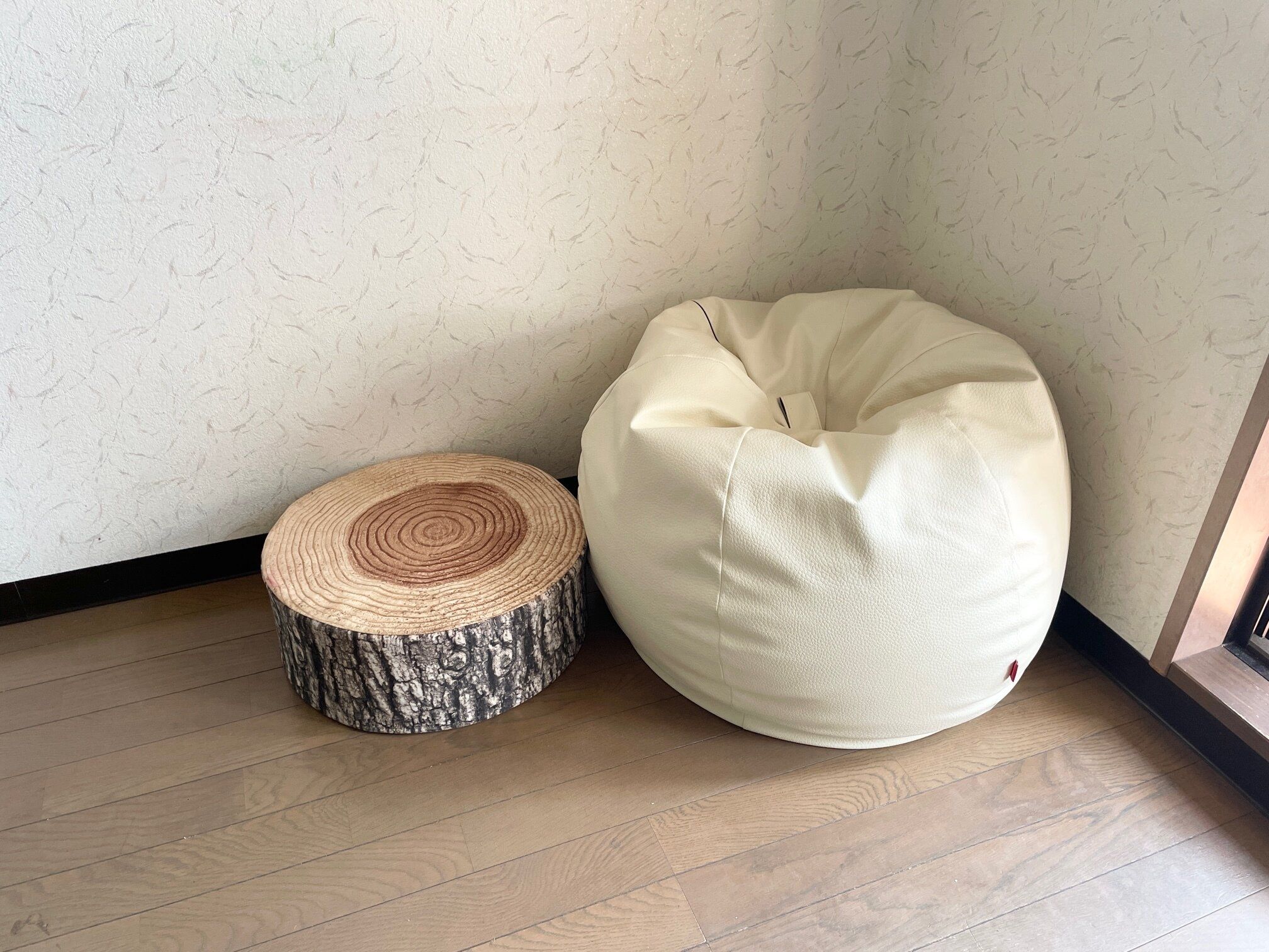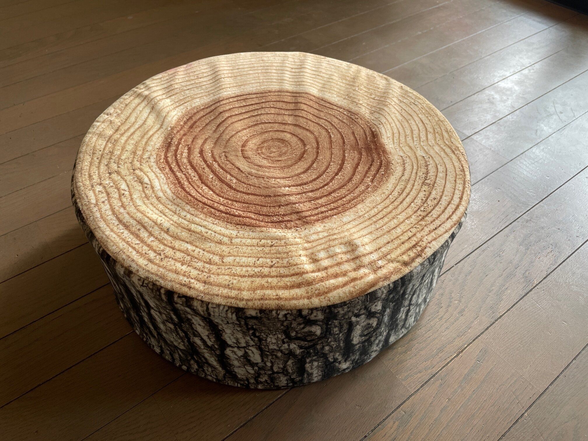 まるで切り株のような見た目のスツールは、小人さんのイスみたい。ほっこりかわいくて癒されます。