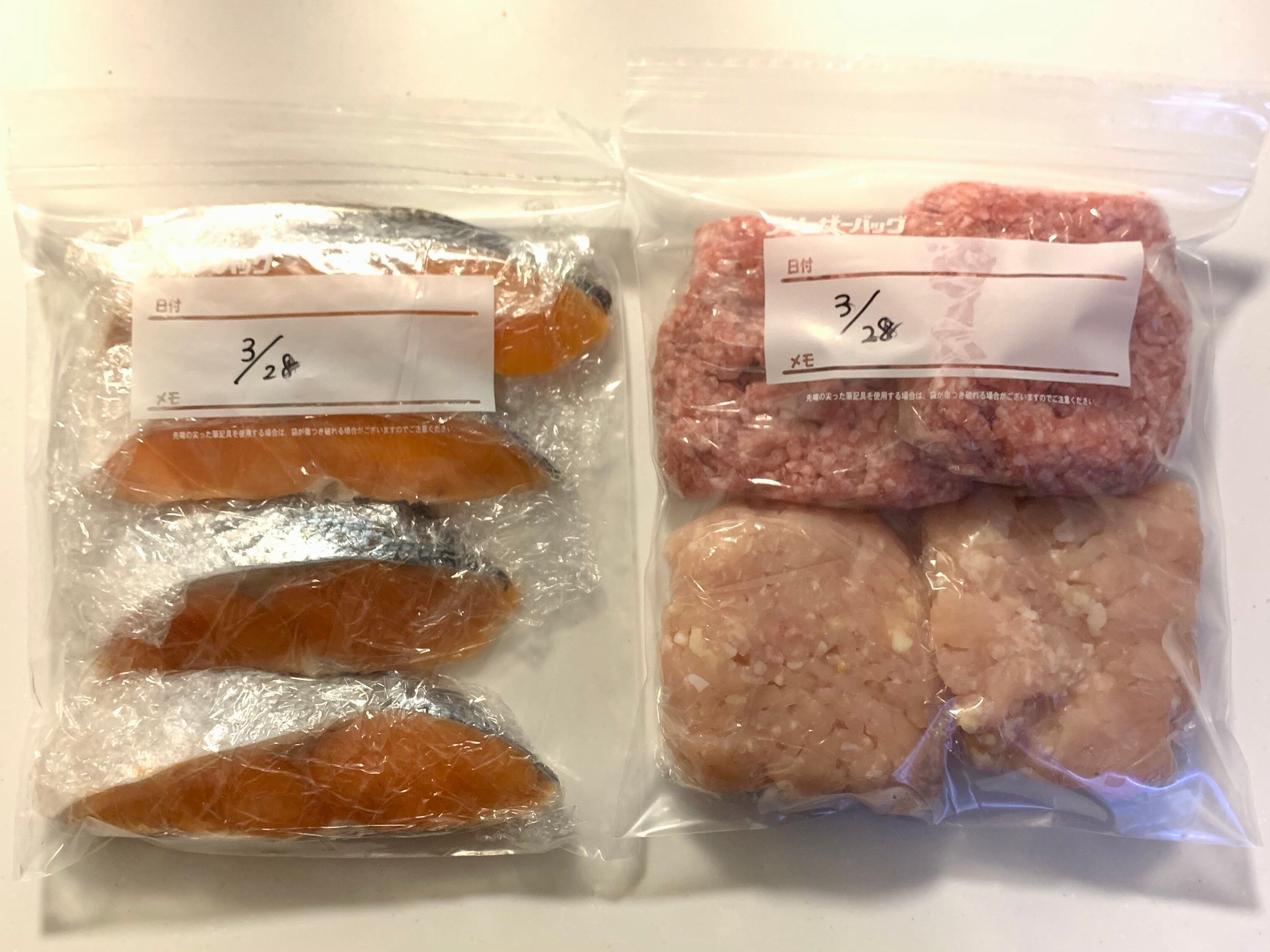 そこから、食材は大体一食分になるように小分けにして冷凍することにしました。