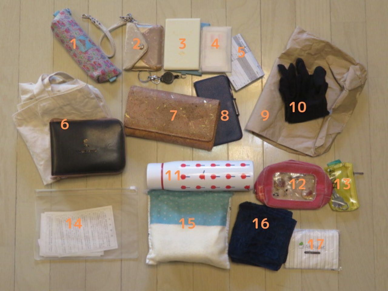 カバンの中身は行き先や用事により多少変わりますが、いつも入れているものだけをピックアップしてみます。