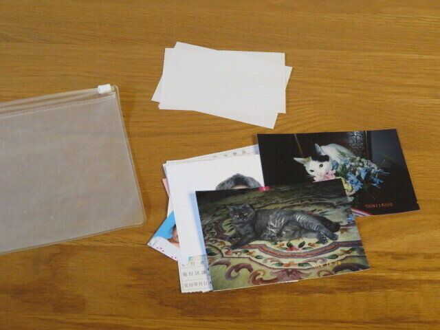 医療証、診察券のほか、子ども達が迷子になった時交番で見せるための写真、裏紙を切ったメモ。