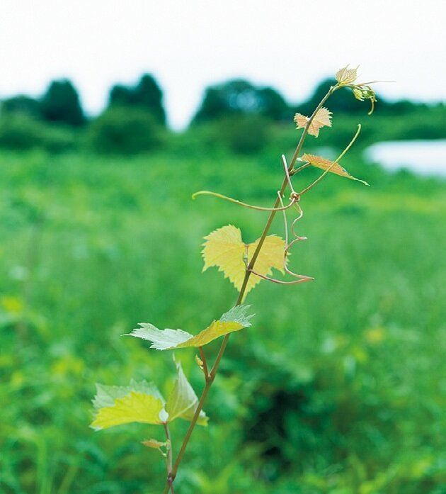 「2週間でこんなにのびちゃって!」と、腰の高さまである雑草をかきわけて、畑の中をぐんぐん歩く西村さん。奥まで入ると草ぼうぼうの合い間から、小さなぶどうの樹が蔓を伸ばしています。「無農薬でも、あらゆる土地でも丈夫に育つ、奇跡のぶどうなんですよ」。農薬を使わずに栽培する農家の苦労を見てきたから、この品種にも、また新しい希望を感じているそう。