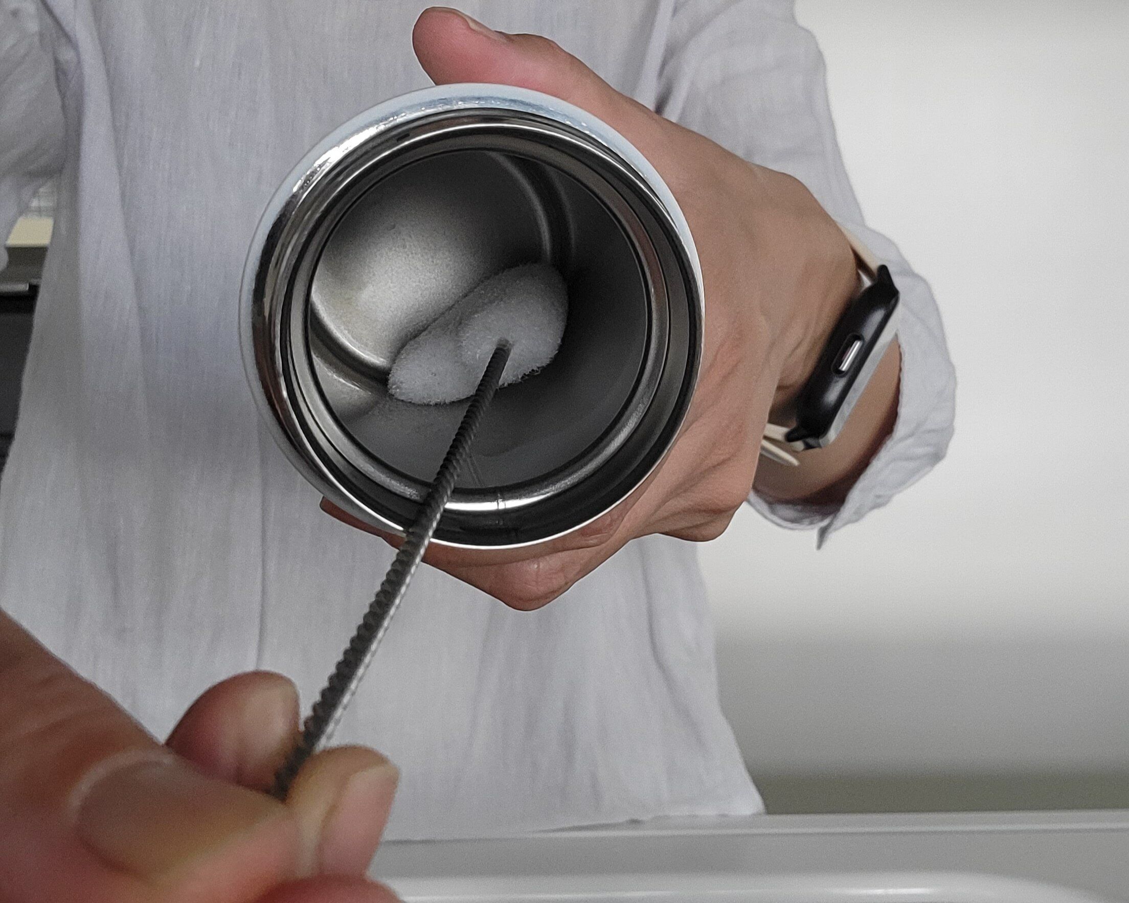 PET詰替ボトルの中を洗うのに適したブラシとなっているので、水筒は少し無理があったかもしれません。