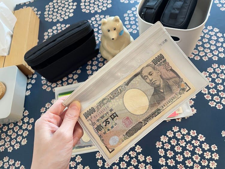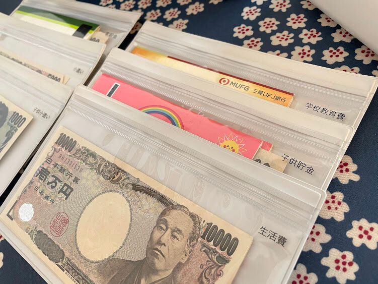 生活費や貯金、お小遣いなどそれぞれ片面クリアケースに入れて管理します。貯金や振り込みなどは片面クリアケースにお札と通帳をいっしょに入れておくと、銀行周りもスムーズにできますよ。1ヶ月分の使える金額をそれぞれ振り分けておくことで、残金の把握がしやすくなるので、無駄遣いもなくなりました。