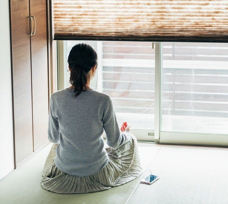 1日中、家事や仕事に追われていると行き詰まるので、インスタライブのレッスンで瞑想の時間も。「無になることで、また和菓子のアイデアも生まれます」。