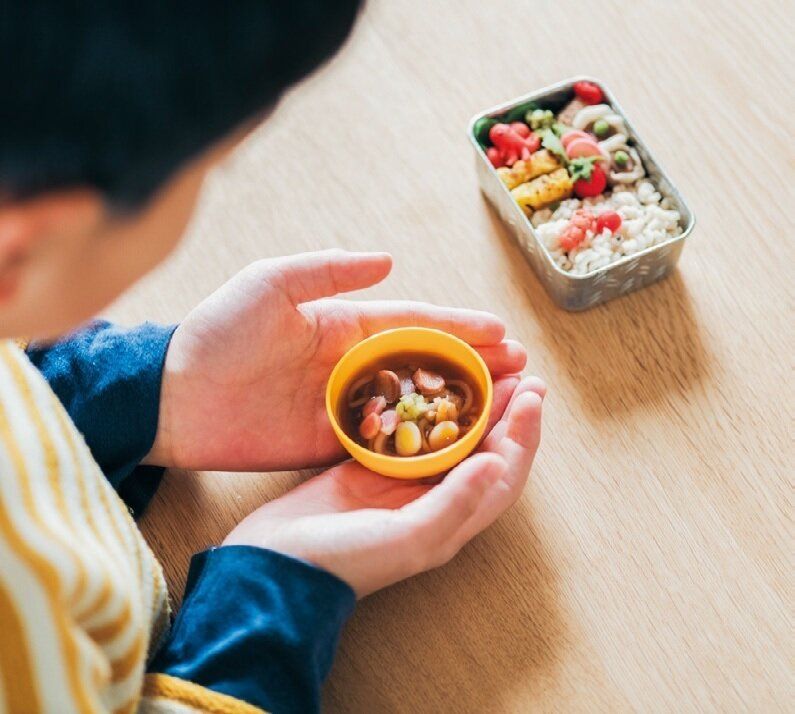 麺100円ショップで買った粘土用道具で作り、スープ部分はしょうゆを入れてみたらし味に。「ラーメンもおべんとうも息子のリクエストで作りました」。