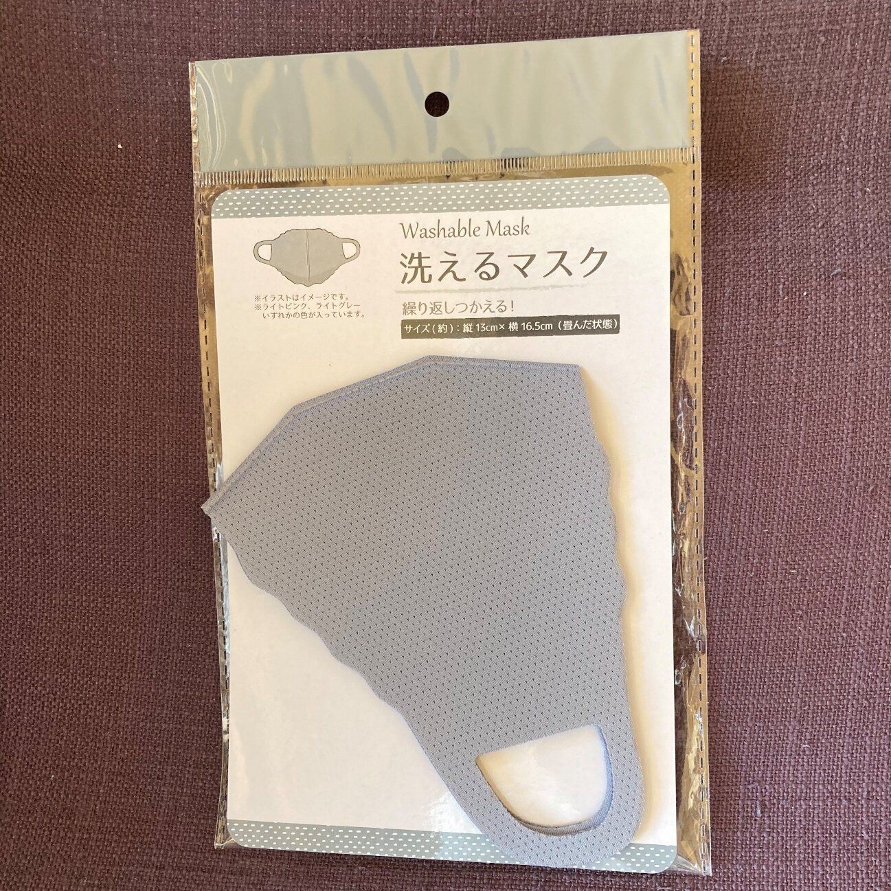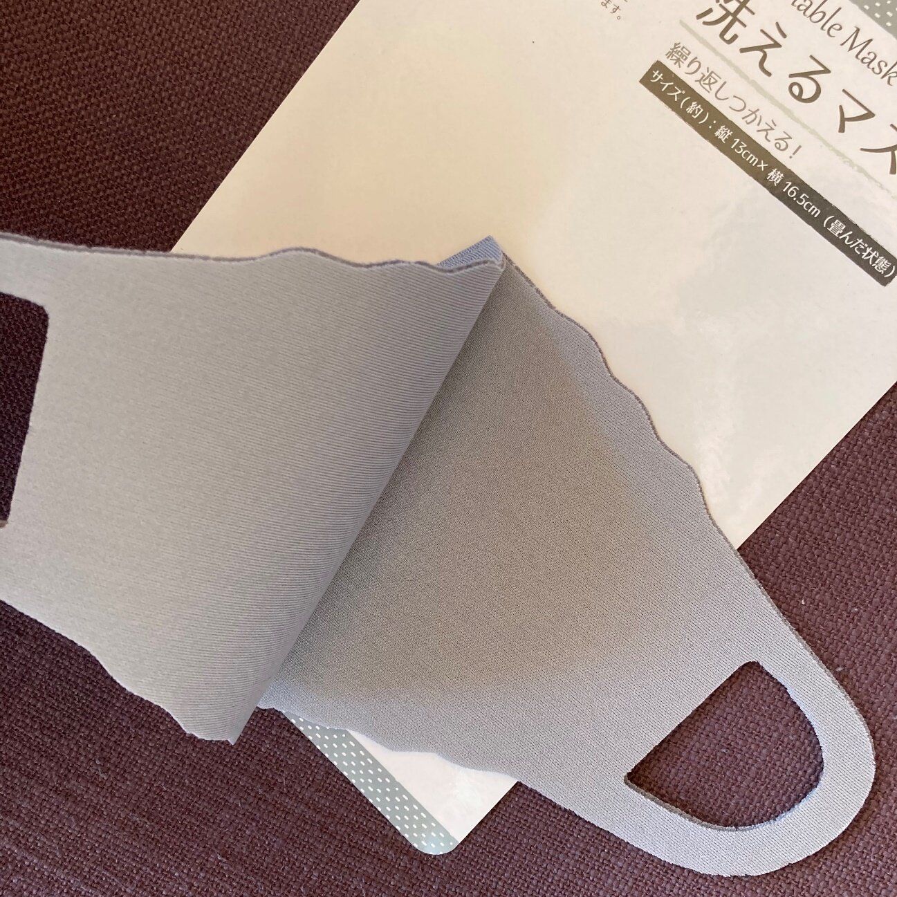 最近100円ショップでも、洗えるマスクが本格的に販売され始めました。セリアで購入したこちらの「洗えるマスク」は素材は柔らかいポリウレタン製で、顔に接していても息苦しい感じがあまりしません。汗で濡れてもすぐに乾いて使えるようになるのもメリットですね。