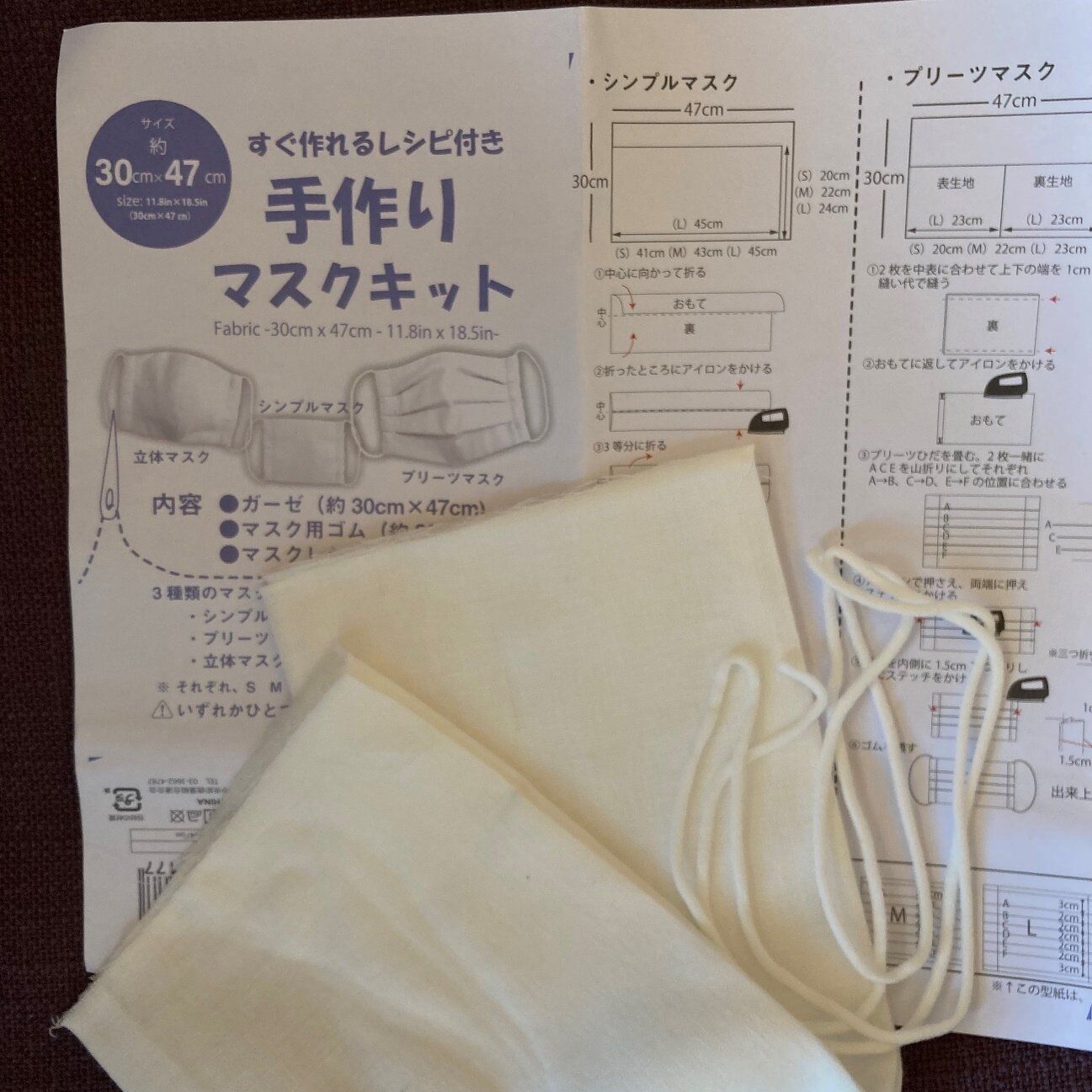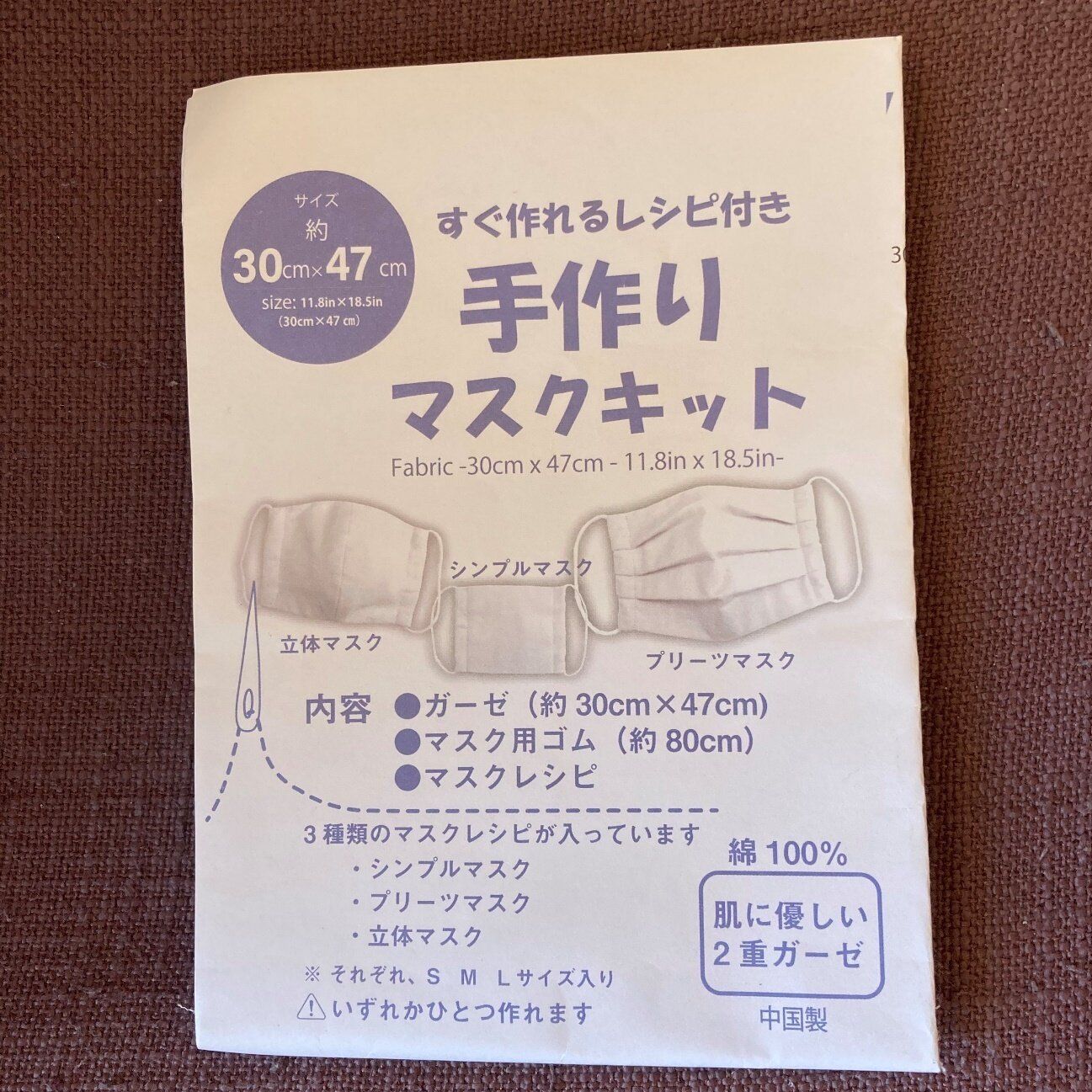 商品に同封されているマスクレシピを読むと、シンプルマスクだけではなく、プリーツマスク、立体マスクなど3種類のマスクのつくり方が学べます。マスクのつくり方を覚えておけば、マスク不足になっても自分でマスクを自作できて安心。マスクレシピだけでも100円の価値がありますね。